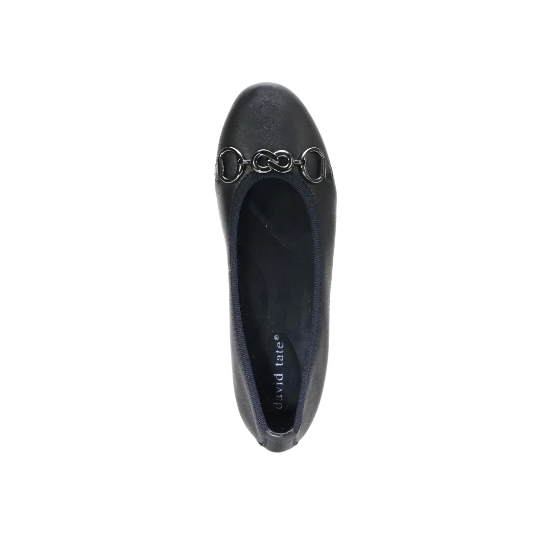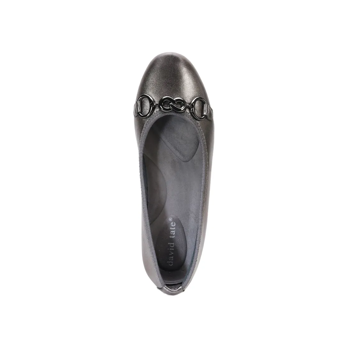 The David Tate® Omega offers a classic ballet flat design, perfect for everyday wear. Featuring a stylish metal chain, this shoe exudes elegance, while its flexible outsole and cushioned insole provide superior comfort for all-day wear.