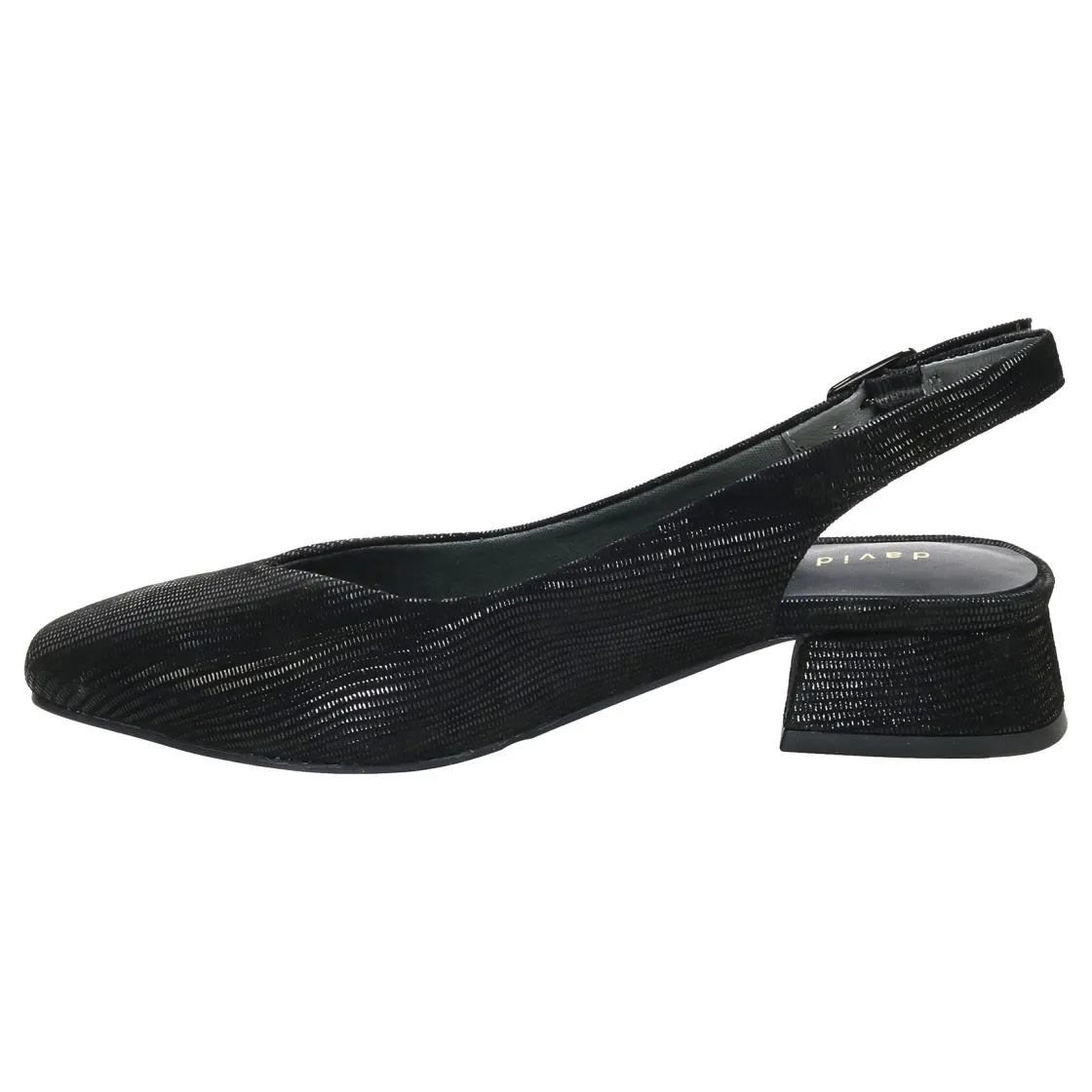 The David Tate® Sugar exudes timeless elegance, making it the perfect choice for both professional settings and evening events. Crafted with intricate details in mini lizard print suede, this classic backstrap pump offers a flexible outsole and a cushioned insole for all-day comfort.