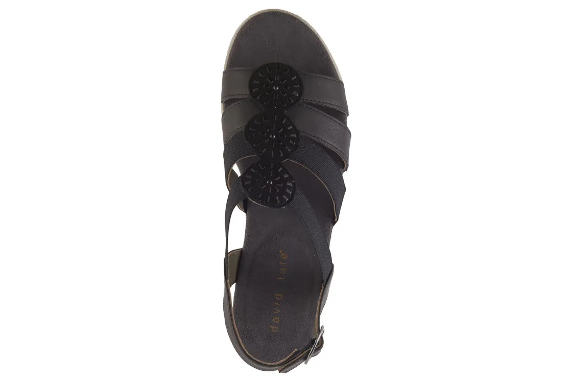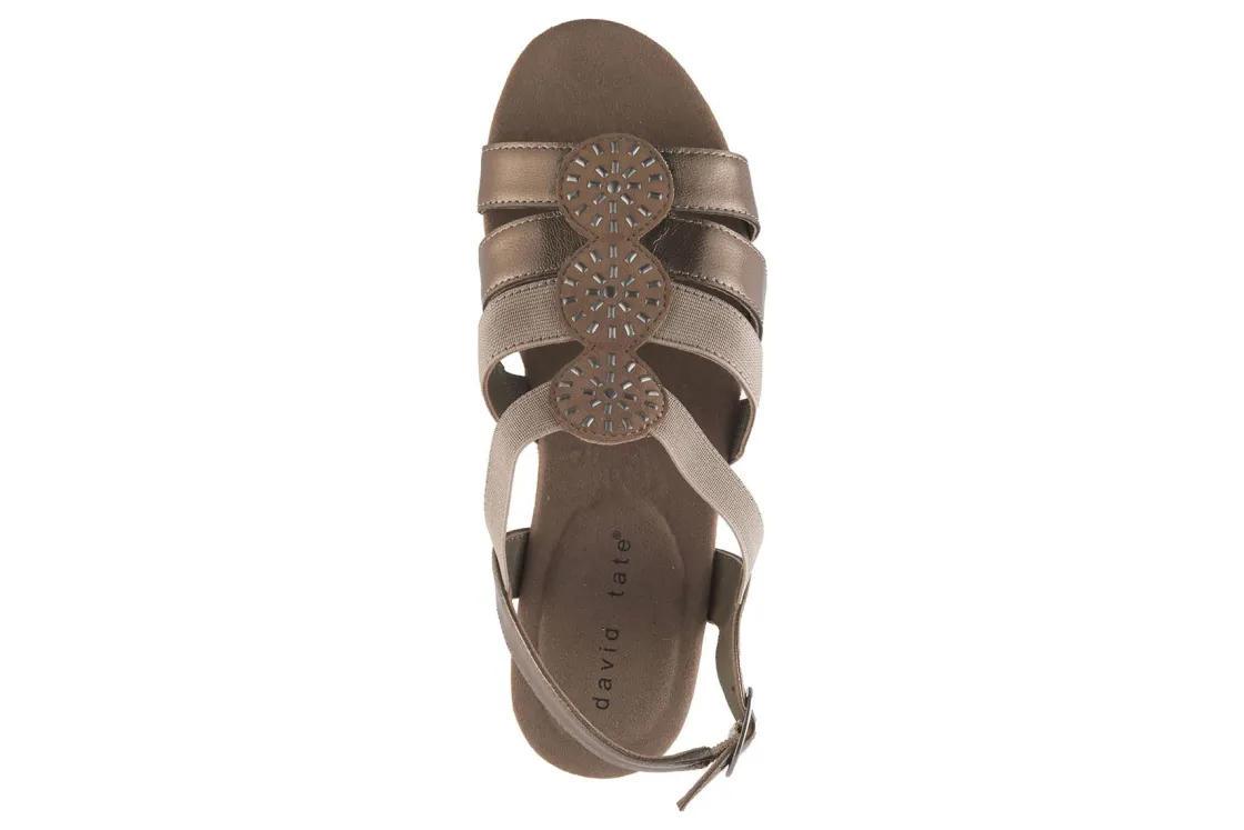 David Tate Quilt is an upscale strappy sandal designed for comfort. These slingback sandals have leather upper straps, padded insoles and rubber outsole. Elasticized bands help to secure feet in place, while an open round toe provides comfort and breathability.