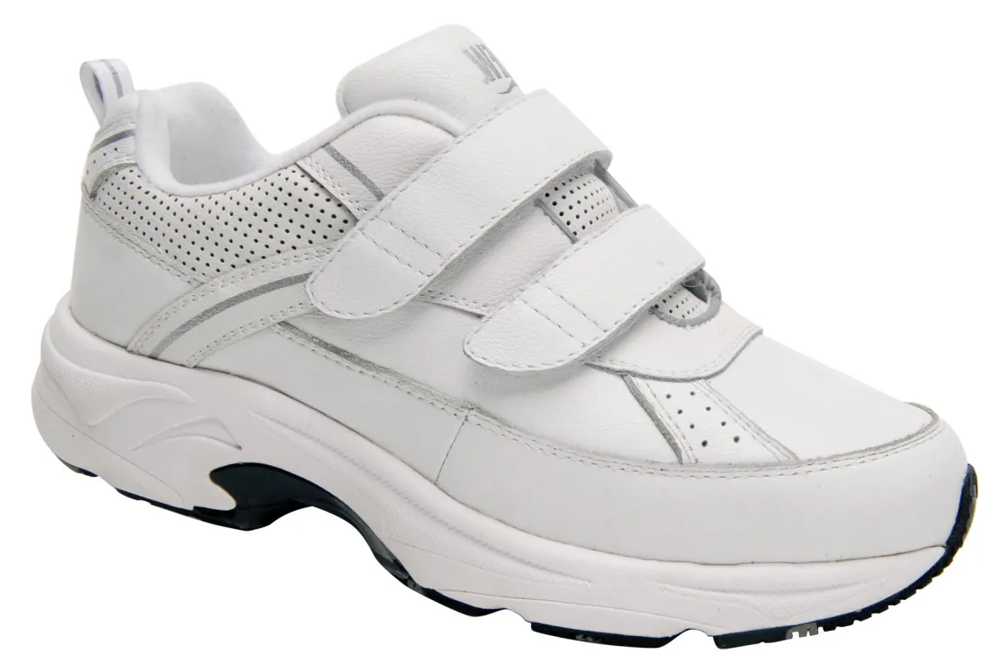 The women’s Drew Paige walking shoe features a breathable leather upper, while the hook and loop straps offer adjustability for a more comfortable stride. Two removable insoles accommodate an orthotic or provide extra depth.Narrow: N, Medium: M, Wide: W, X-Wide: WW, XX-Wide: XWLeather upper with two adjustable hook and loop straps for a secure and customized fit.Roomy toe box provides a more comfortable fit.Soft, foam-padded tongue and collar.Extended medial heel stabilizer prevents heel from slipping.Dri-Lex® lining with AEGIS Microbe Shield™