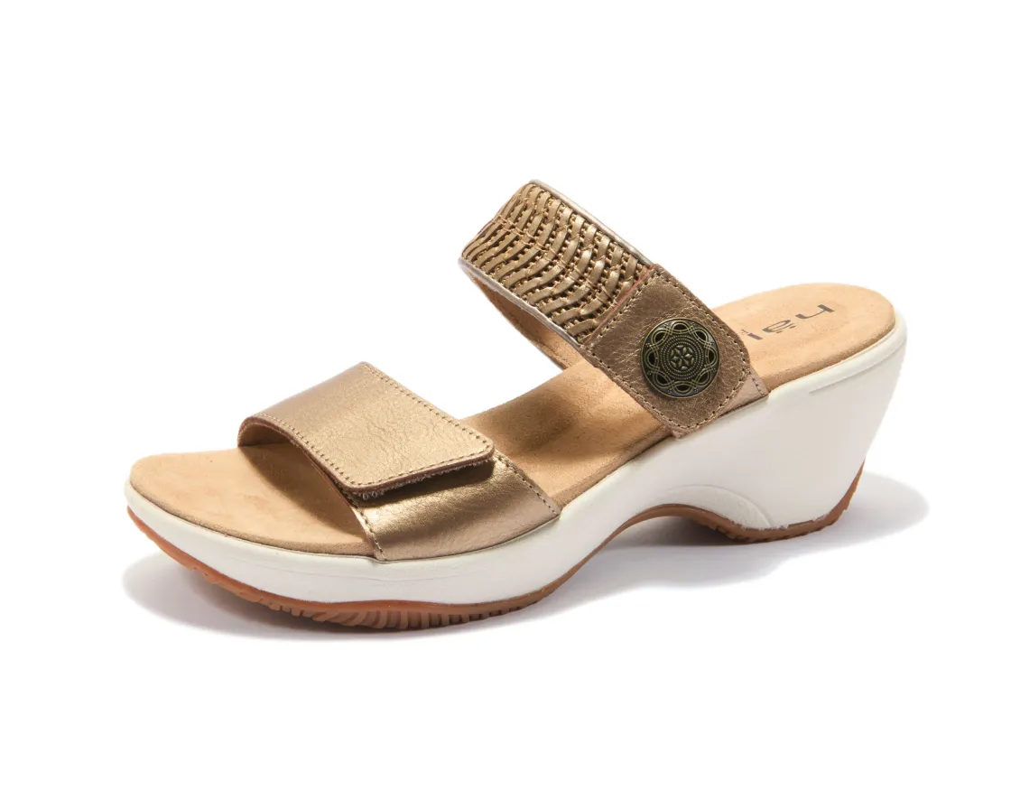 Elevate your daily style with the Halsa Footwear Delilah slip-on wedge sandal, featuring premium leather uppers that are both chic and comfortable. Designed with adjustable front and back straps for a perfect fit, these sandals are a great choice for any occasion this spring and summer.