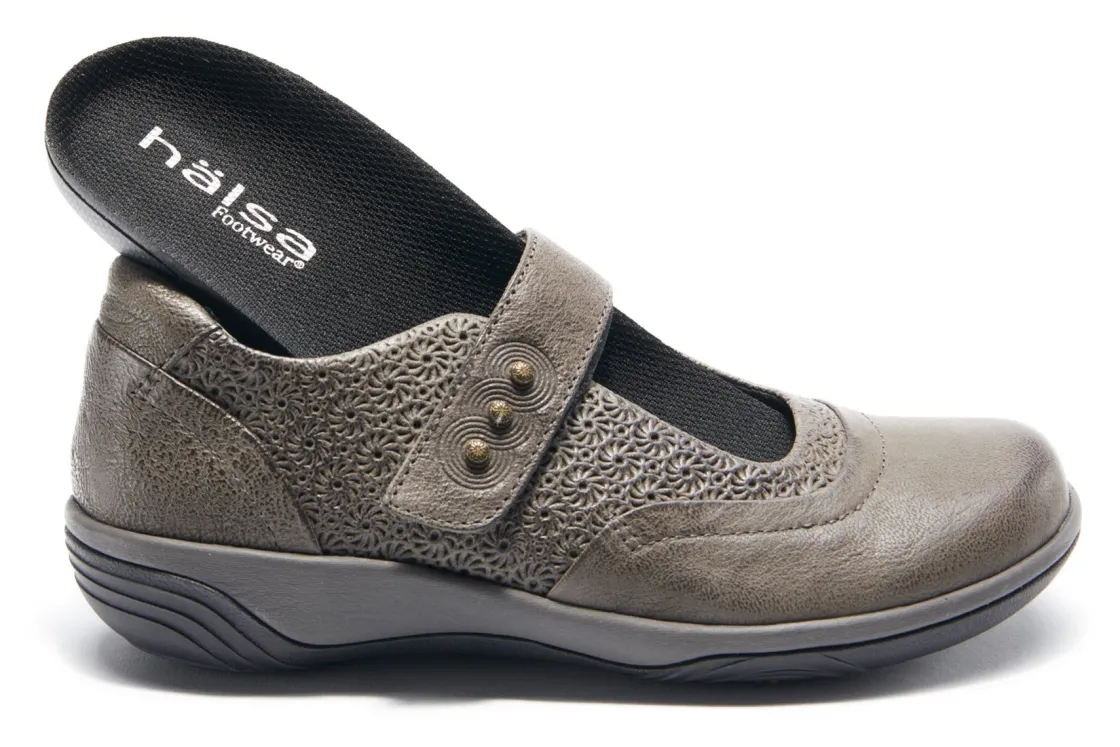 Halsa Footwear Aloe is a sturdy and comfortable Mary Jane shoe. Features include leather uppers, removable antimicrobial fabric insole and rubber outsole. An EVA midsole, leather and fabric lining and adjustable elasticized strap with hook and loop closure makes these Mary Janes popular.