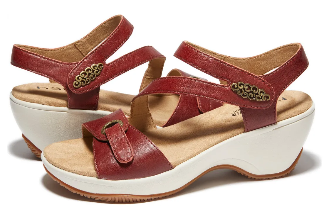 With its Equilibrium + Technology, the Halsa Footwear Cindy, a supportive ]ankle Strap wedge sanda, will keep your feet properly aligned and supported throughout the day. Brace yourself for the ultimate comfort of this sandal with a cradle footbed along with front and back hook and loop straps. Because ultimately, whatever the occasion, your feet deserve the best!