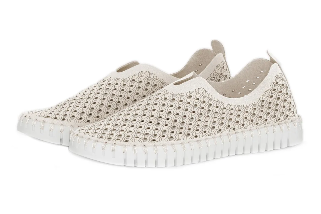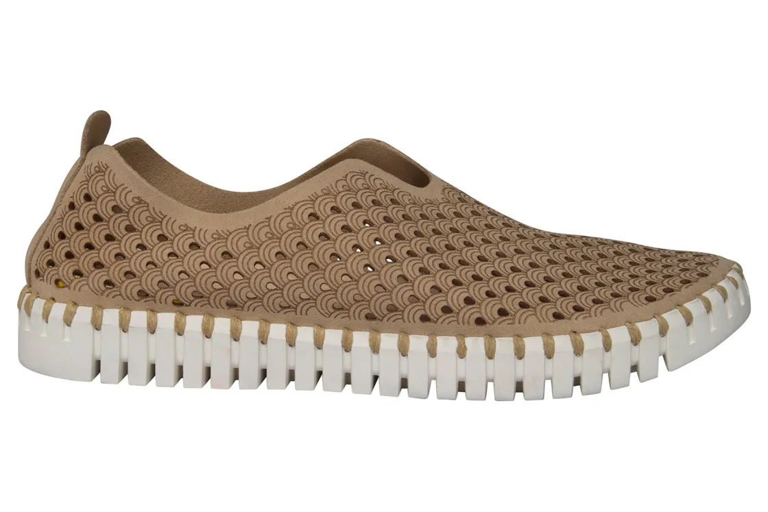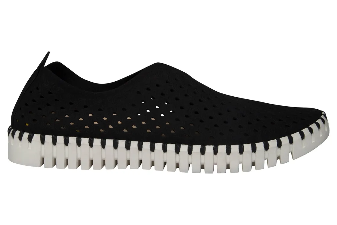 Ilse Jacobsen Tulip 139 is a lightweight and comfortable slip-on shoe. Prominent features include perforated recycled microfiber uppers, a removable insole and a sturdy and chunky outsole.