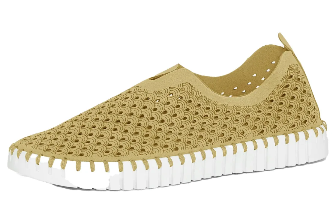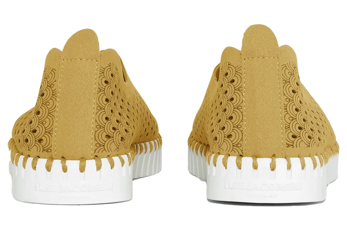 Ilse Jacobsen Tulip 139 is a lightweight and comfortable slip-on shoe. Prominent features include perforated recycled microfiber uppers, a removable insole and a sturdy and chunky outsole.
