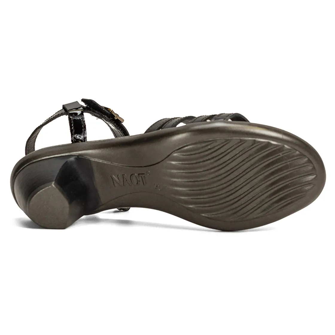 Naot Current is a dressy and strappy heeled sandal. Featuring a supportive heel cup and adjustable buckle strap, the outsole has a 2-inch heel that won’t slip. An anatomic cork and latex footbed is wrapped in leather with a microfiber center to prevent slipping and molds to the shape of feet with wear.• Strappy Upper Design.• Anatomic Cork and Latex Footbed.• Lightweight and Flexible Rubber Sole.• Adjustable Buckle Strap.• Heel Height: 2 inches.