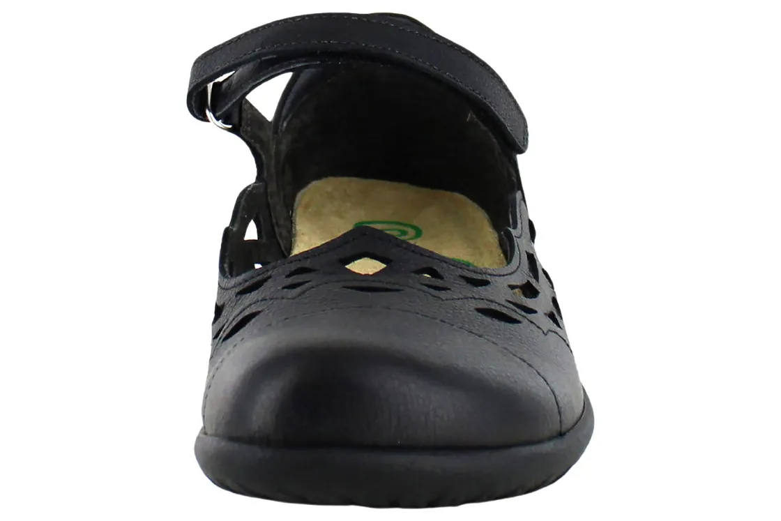 With a beautiful cutout design, you will certainly stand out in the Agathis Maryjane! With a hook and loop strap at the instep, these beauties are easy to get on and off and remain flexible for supreme comfort.