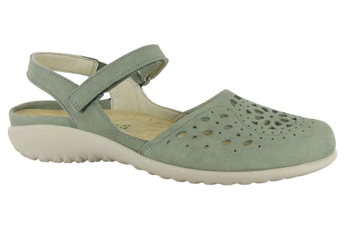 The Naot Arataki is a closed toe slingback shoe with unique cutout designs. This style has a hook and loop closure at the instep. Naot’s removable, anatomic cork & latex footbed is wrapped in pampering suede and molds to the shape of the foot with wear. The Koru Collection features a 1″ polyurethane sole which is extremely lightweight, durable & slip resistant. This collection uses a hand-sewn Strobel construction making it strong and extremely flexible. American Podiatric Medical Association (APMA) Accepted for promoting good foot health. Patented Naot Replacement Footbeds are also available for Arataki.