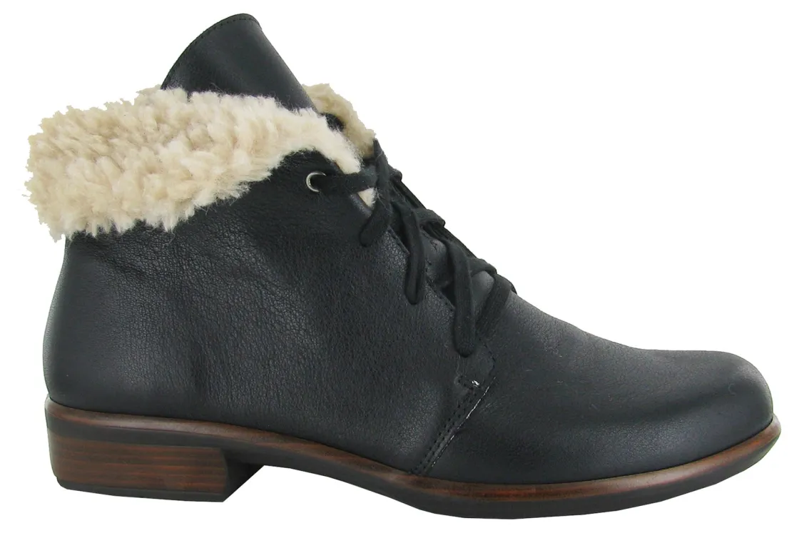 Smooth leather, faux shearling cuff and lace up closure that make these ankle boots irresistible. The Pali is a stylish bootie and it features Naot’s removable, anatomic cork & latex footbed for all day comfort. The Aura Collection features a 1.5″ polyurethane sole with a metal shank which is extremely lightweight, durable & abrasive to prevent slipping. This collection uses a hand-sewn Strobel construction making it strong and extremely flexible.