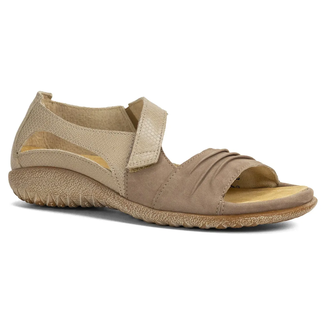 Naot Papaki is a comfortable and stylish sandal that’s destined to become a new wardrobe favorite. A padded front strap with ruched detailing, a removable cork & latex footbed and a 1-inch PU outsole helps these sandals stand out.