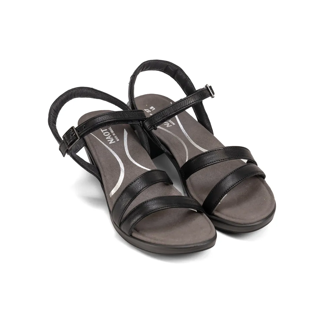 The bounty is the perfect heel. This style has a padded backstrap and front strap for ultimate comfort. The Bounty features a faux buckle hook and loop closure at the instep and gore at the front for adjustability.