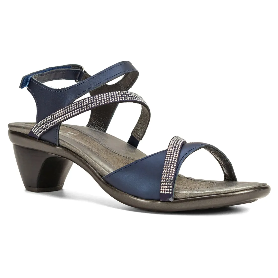 The Naot Innovate is the perfect backstrap heel for all of your festive events! This sandal has a hook & loop backstrap & gore at the middle straps creating a custom fit. The Innovate has a padded front strap for ultimate comfort. The feminine rhinestone accents make this shoe stand out from the crowd. Naot’s anatomic cork & latex footbed is wrapped in leather with a microfiber center to prevent slipping and molds to the shape of the foot with wear. The Avantgarde Collection features a TPR sole with a metal shank. This sole offers the look of a 2″ heel without the feel.