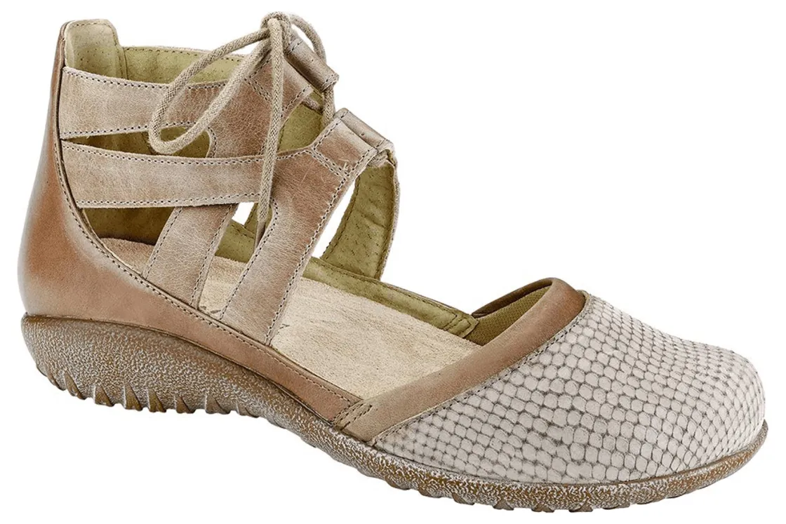 Transition into warmer weather with the women’s Naot Kata closed-toe sandal. The style cut out detail adds interest and breathability, while the lace up closure secures the foot in place. The shock absorbent cork and latex footbed cushions and contours the foot to deliver superior comfort.American Podiatric Medical Association (APMA) Accepted for promoting good foot health.