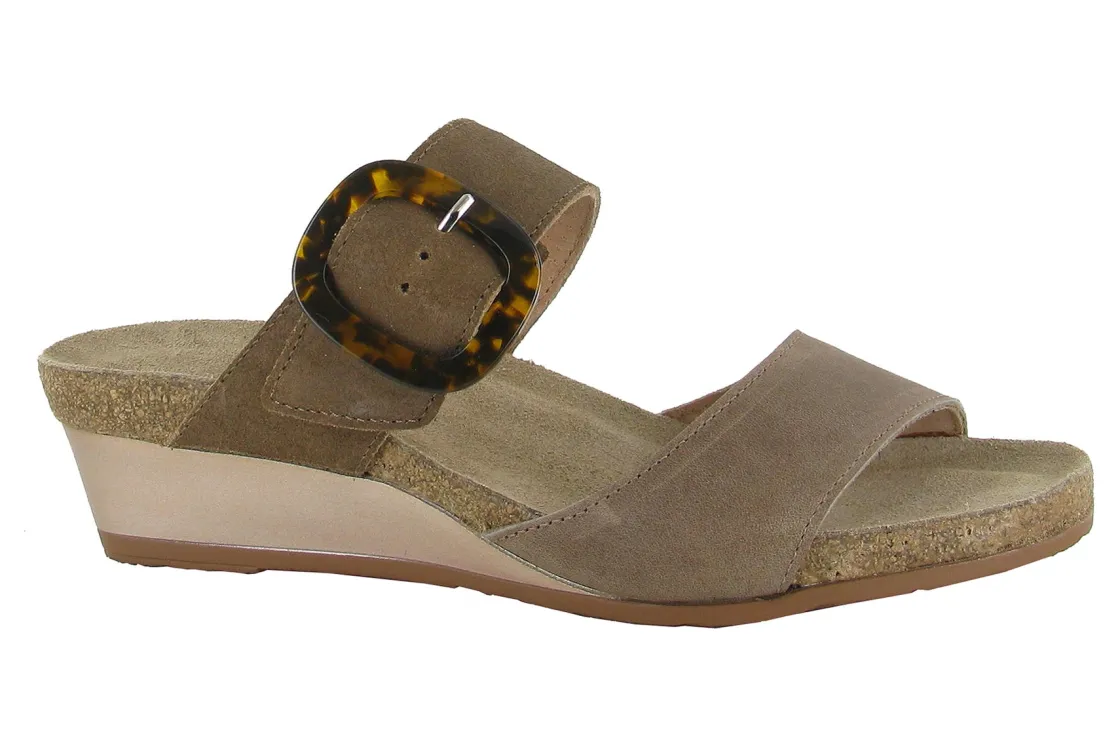 Naot Kingdom is a casual dressy slide with a sleek design. The anatomic cork and latex footbed is covered in suede and molds to the shape of the foot with wear. With an adjustable buckle strap offered in multiple colors, these trendy slides are perfect for the office or a night on the town.• Multi-Colored Leather Upper and Straps.• Outsole Material: PU.• Cork and Latex Footbed.• Heel Height: 1.75 inches.