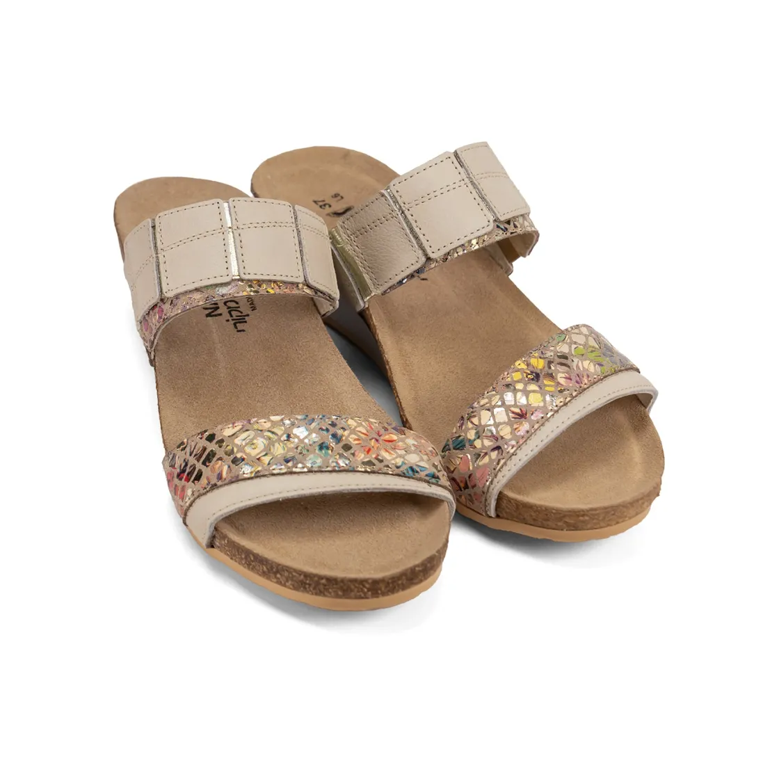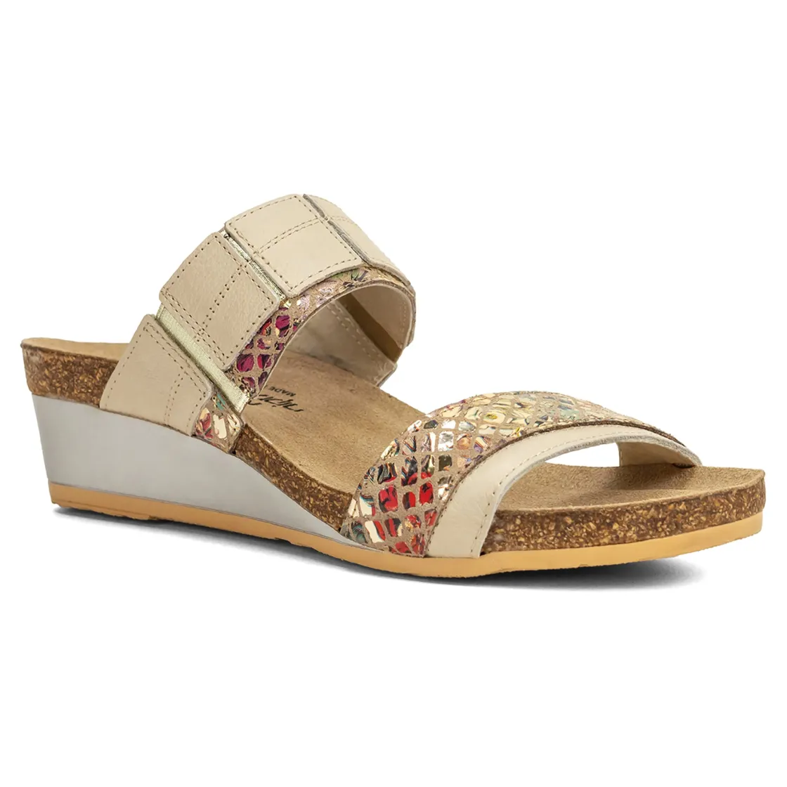 Naot Royalty is a dressy slide with a sleek design. An anatomic cork and latex footbed is wrapped in suede and molds to the shape of the foot with wear. A sturdy PU outsole and stretchable instep strap completes this fashionable silhouette.