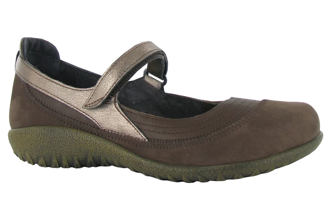 The Naot Kirei is a vibrant, fashionable Maryjane shoe. This style has a padded heel cup for stability & comfort and a hook & loop closure at the instep for adjustability. The front portion of the Kirei features padded technical lining which provides comfort and absorbs moisture. Naot’s removable, anatomic cork & latex footbed is wrapped in pampering suede and molds to the shape of the foot with wear. The Koru Collection features a 1″ polyurethane sole which is extremely lightweight, durable & slip resistant. This collection uses a hand-sewn Strobel construction making it strong and extremely flexible.