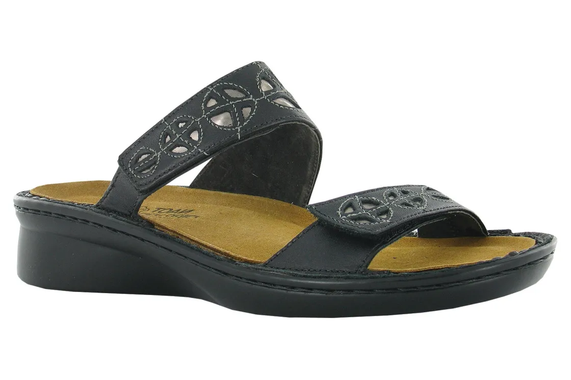 The women’s Naot Cornet slide sandal offers the perfect solution for relaxed comfort and casual style. The Cornet features a double hook and loop closure for adjustability, a removable cork and latex footbed and a durable polyurethane outsole for all-day walking support.