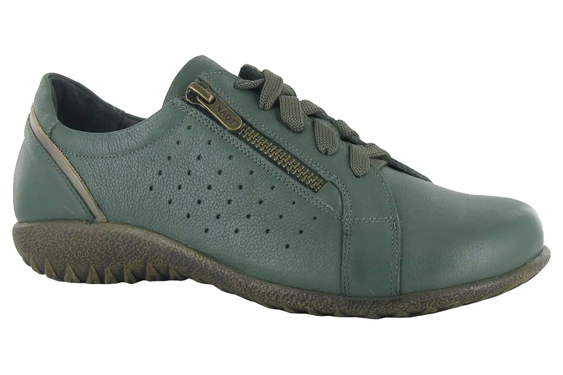 The Moko is a great, everyday lace-up shoe. This style has side zippers for easy accessibility. It also features a slightly padded tongue and a padded heel cup for additional stability & comfort. Naot’s removable, anatomic cork & latex footbed is wrapped in pampering suede and molds to the shape of the foot with wear. The Koru Collection features a 1″ polyurethane sole which is extremely lightweight, durable & slip resistant. This collection uses a hand-sewn Strobel construction making it strong and extremely flexible.American Podiatric Medical Association (APMA) Accepted for promoting good foot health.