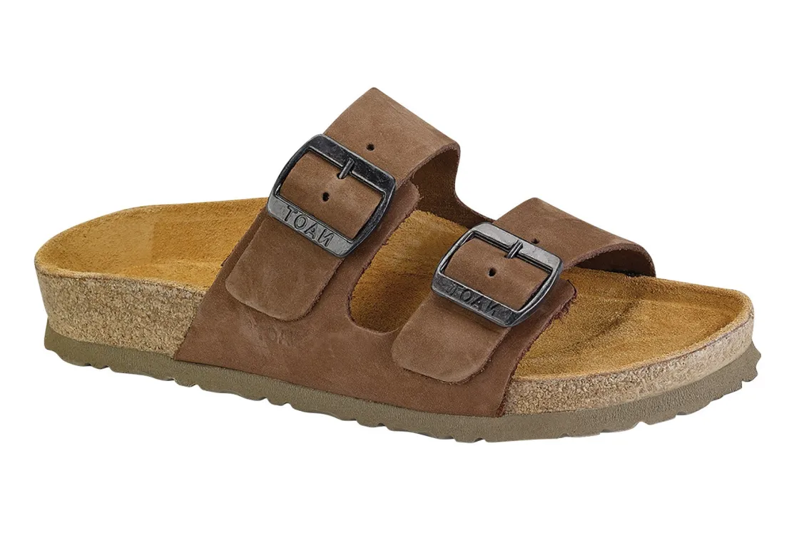 Signature Naot comfort meets casual laidback design in the women’s Naot Santa Barbara sandal. A soft suede upper features two adjustable buckle closures for a comfortable fit, while the shock absorbing and flexible footbed is wrapped in breathable, pampering suede.American Podiatric Medical Association (APMA) Accepted for promoting good foot health.