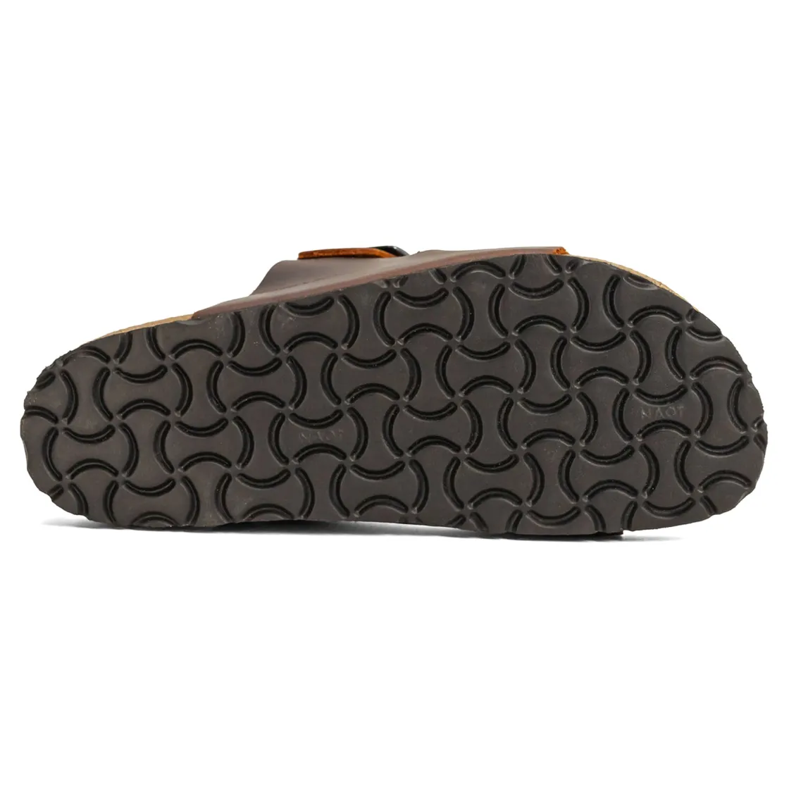 Anatomic cork and latex footbed absorbs shock and conforms to the foot.