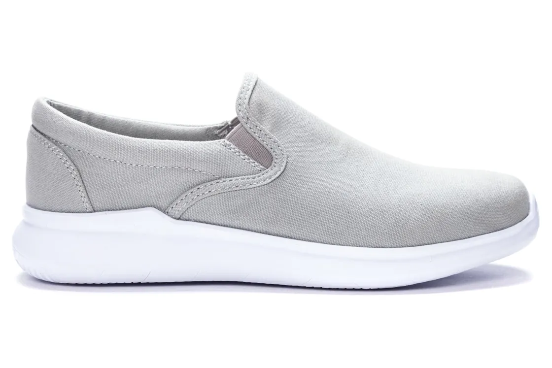 Propet Finch is a classic and comfortable slip-on sneaker. These timeless and trendy shoes have canvas uppers, removable footbeds and a sturdy rubber outsole. Other features include extra heel cushioning, twin gores and open cell faux leather insole makes these sneakers a tried and true favorite.