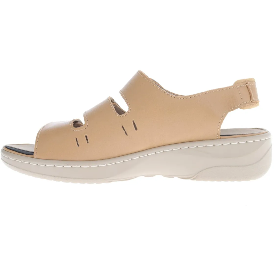 Stylish leather design with decorative perforations for improved air circulation and breathability.