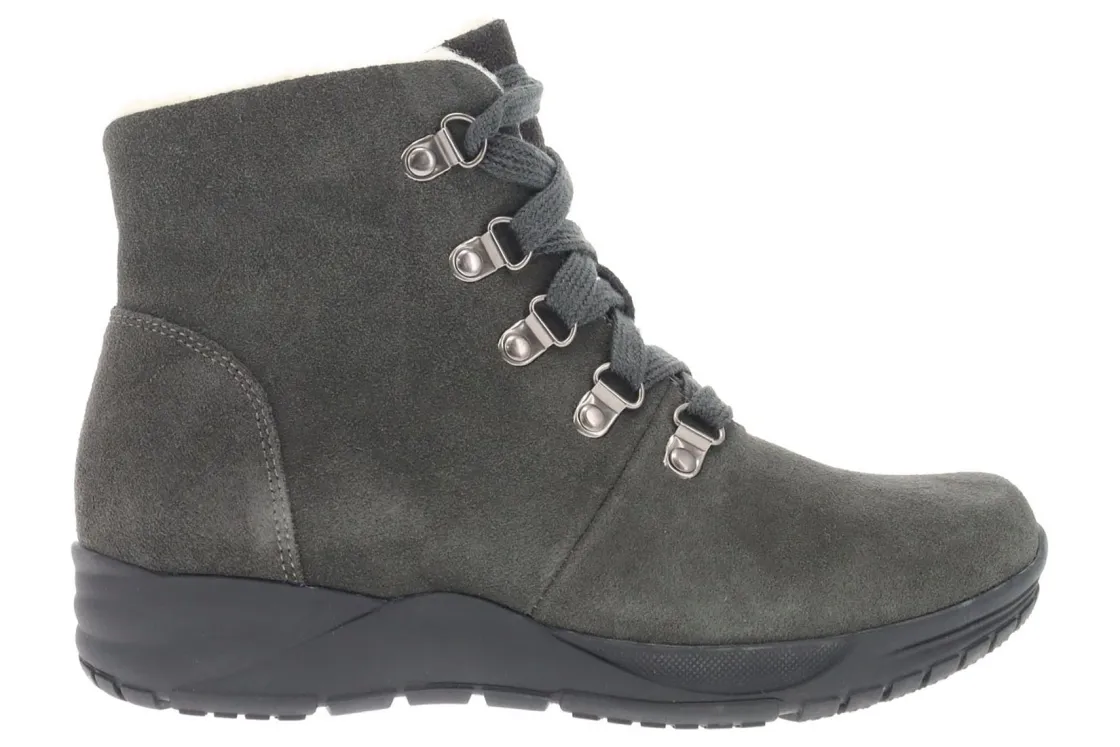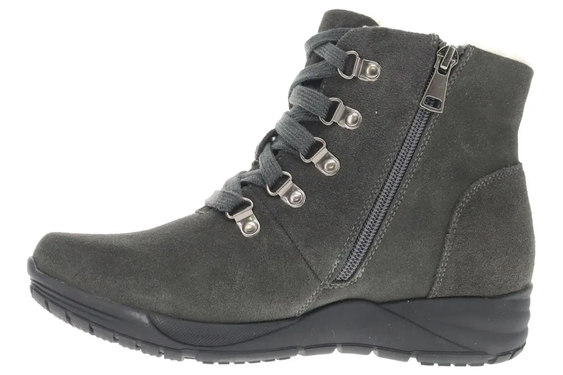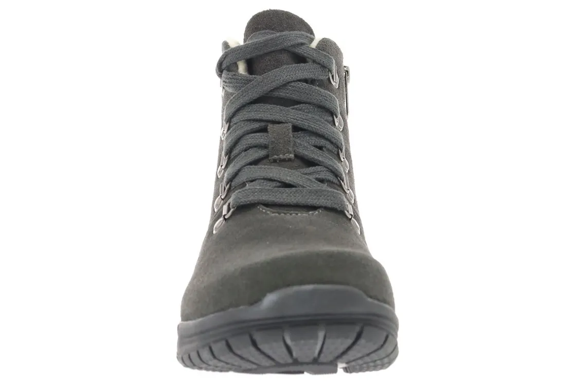 Propet Demi is a cozy and durable bootie for the colder months of the year. Prominent features include cow suede uppers with water-repelling Scotchgard™ treatment and a flexible rubber outsole.