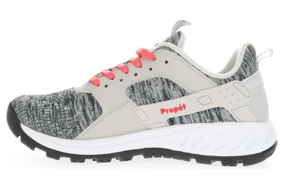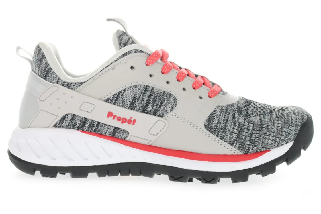 Propet Visper is a rugged trail running sneaker. These hiking shoes have knit and leather uppers, high rebound insoles and a Vibram® Arctic Grip outsole. An EVA footbed and midsole, tongue and heel collar pull tabs and lace-up closure will make these outdoor shoes a must-have.