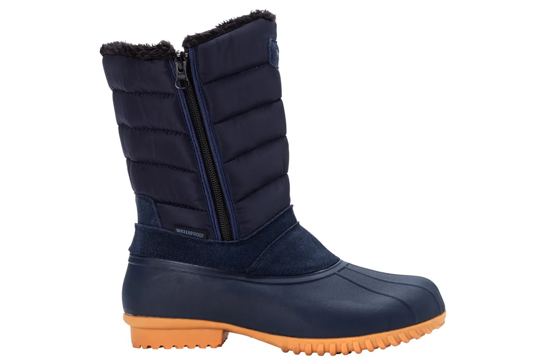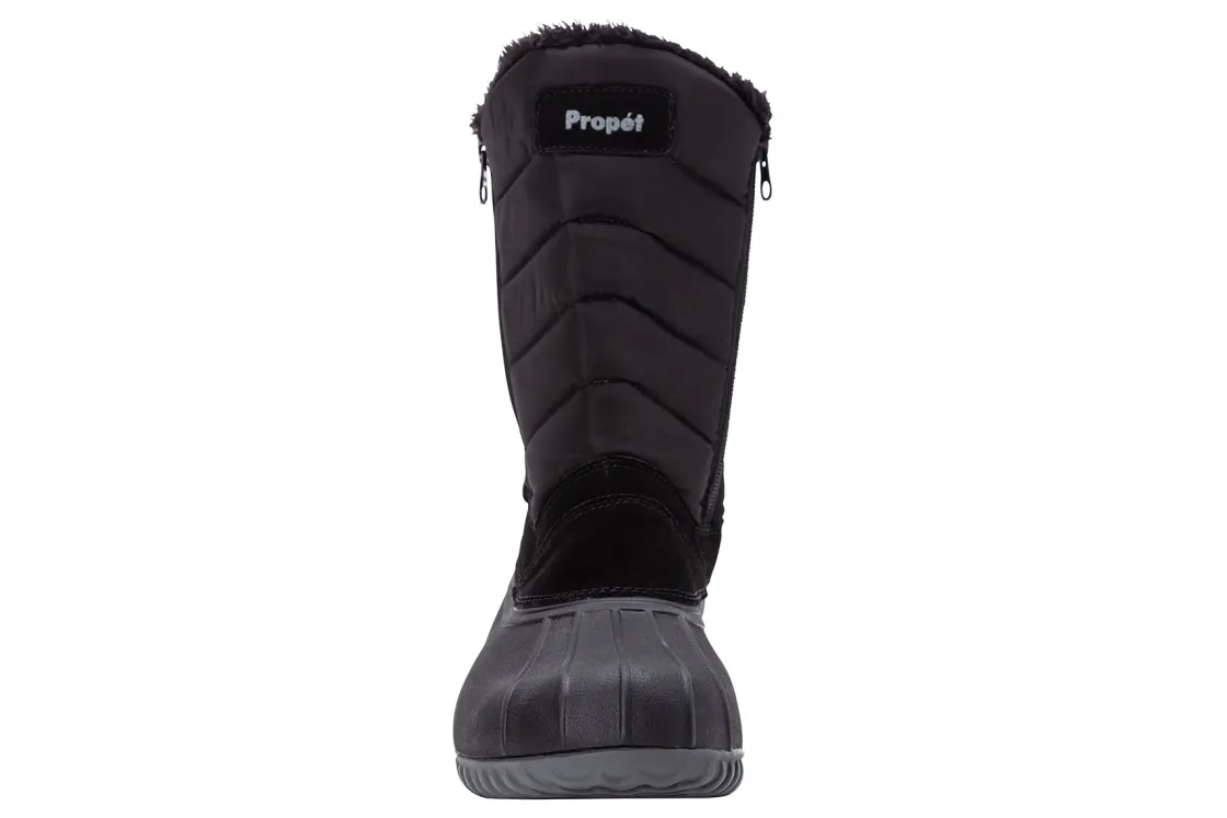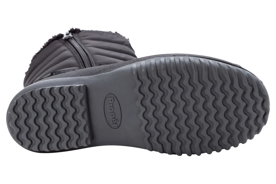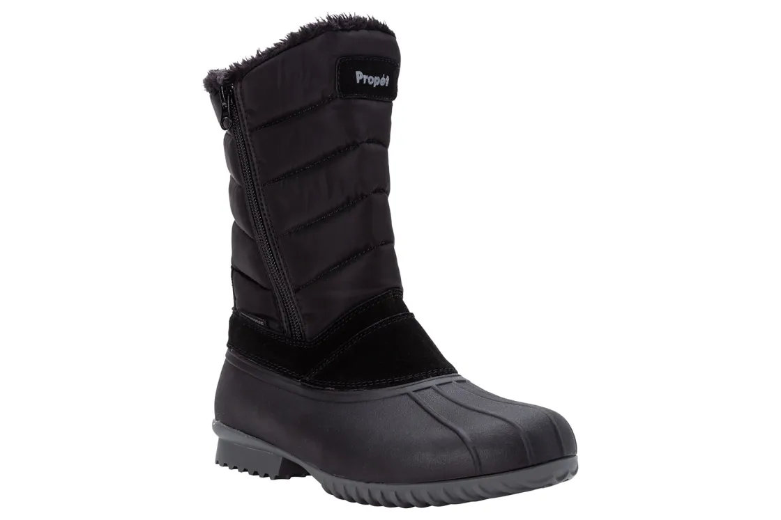 Propet Illia is a stylish and cozy cold weather boot. These winter shoes have nylon and suede uppers, faux fur lining, heat-retaining insole and rubber outsole. Stay dry with a waterproof design, supported with 2 side zippers and comfortable with a wide and rounded toe box.