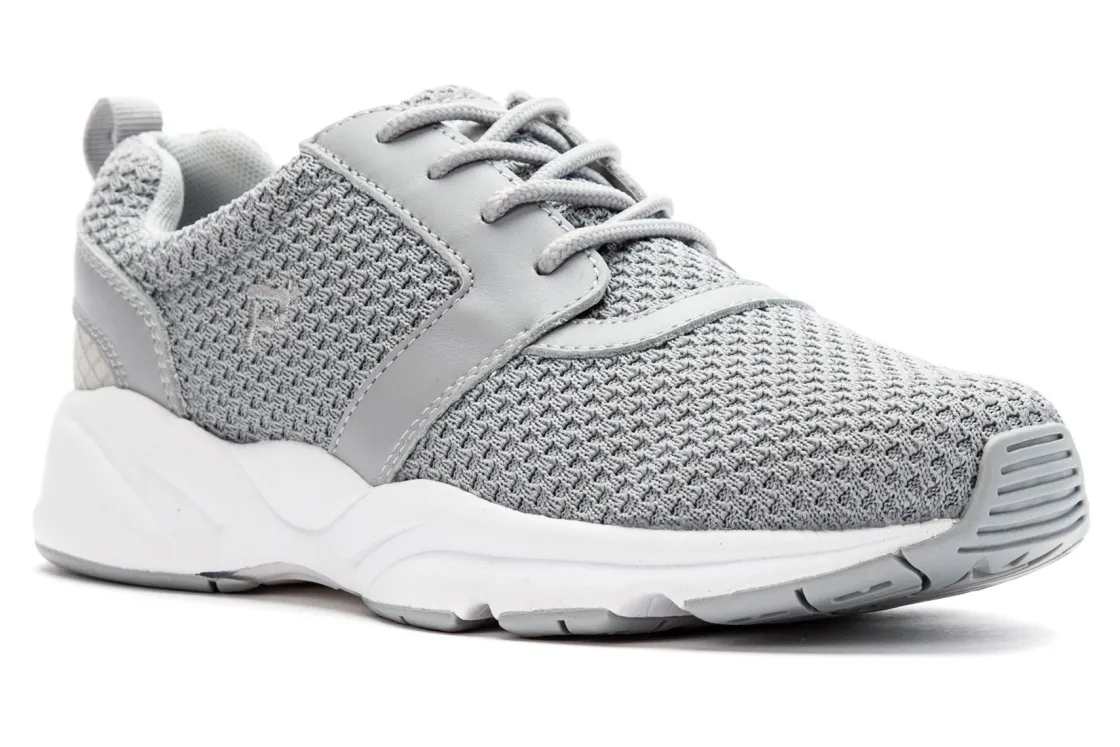 Propet Stability X is a comfortable active shoe. These chic sneakers have mesh and leather uppers, removable PU insoles, EVA midsoles and rubber outsoles. A brushed nylon lining wicks away moisture, while a padded tongue and collar adds all-day comfort.