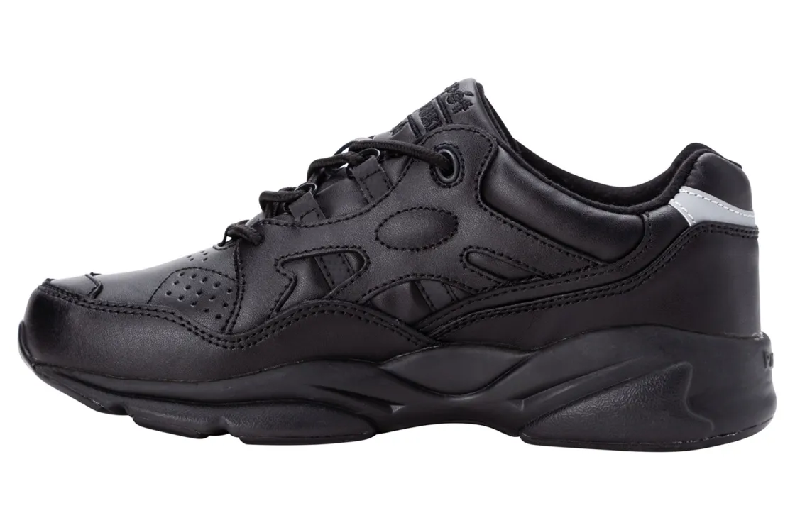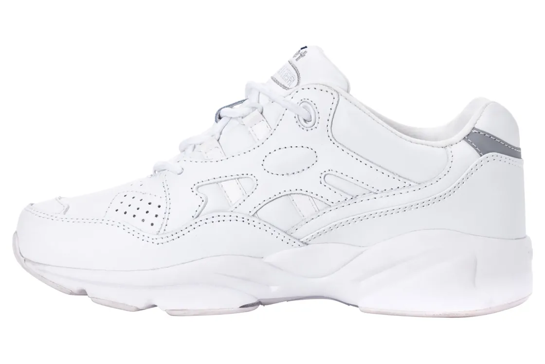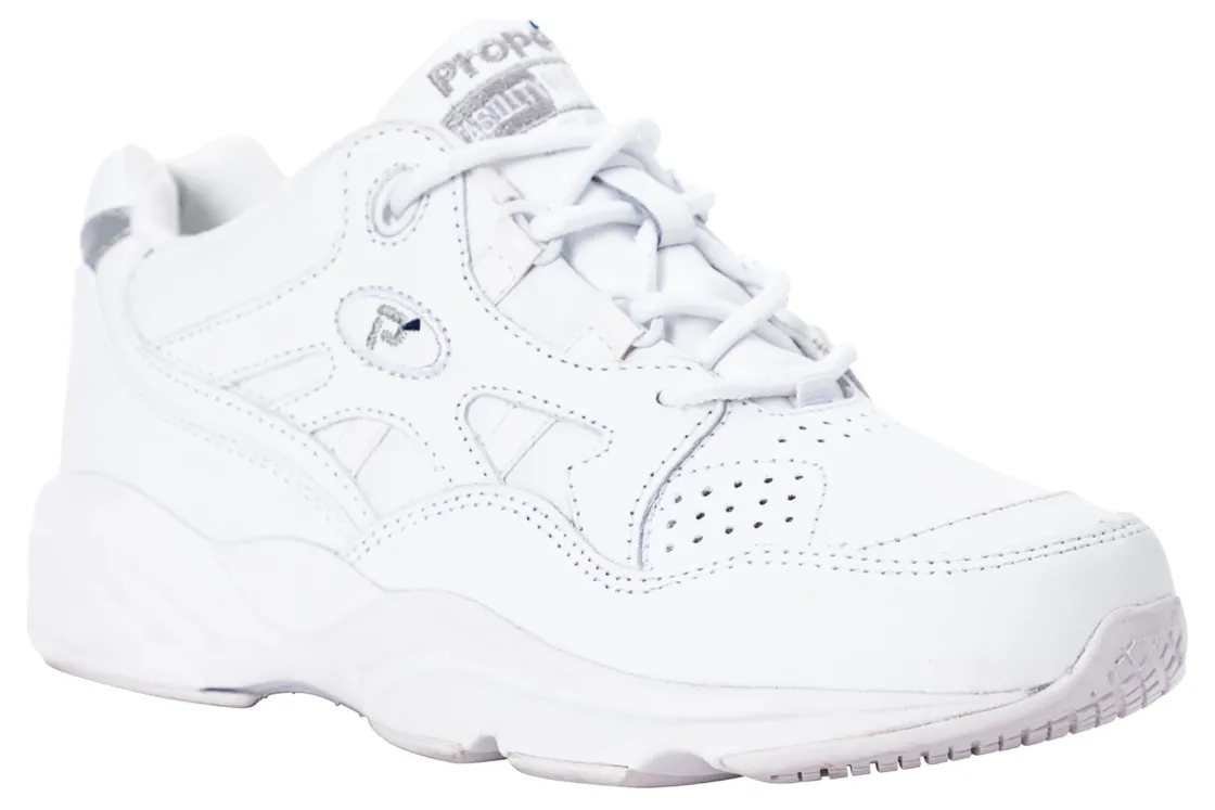 Propet Stana is a durable and comfortable sneaker. Features include leather uppers, roomy toe box, supportive EVA midsole and slip-resistant rubber outsole. A lace-up vamp, round toe, cushioned PU insole and removable footbed will make these sneakers a work out favorite.• Leather Upper.• EVA Midsole.• Removable Footbed.• Slip-Resistant Rubber Outsole.