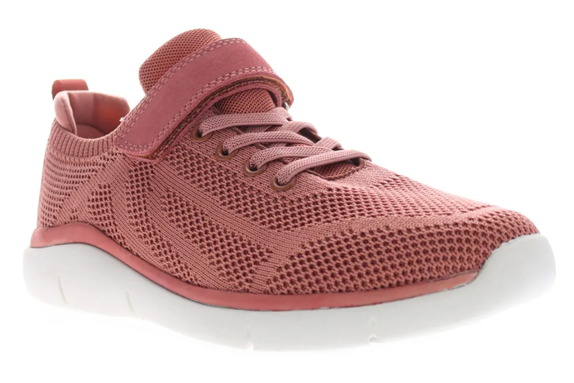 Propet Stevie is a comfortable and secure sneaker. These active shoes have knit mesh uppers with elastic laces, adjustable strap and an EVA insole and outsole. An arch-supporting high-density open-cell PU foam keeps feet in place, while removable double insoles add extra comfort.
