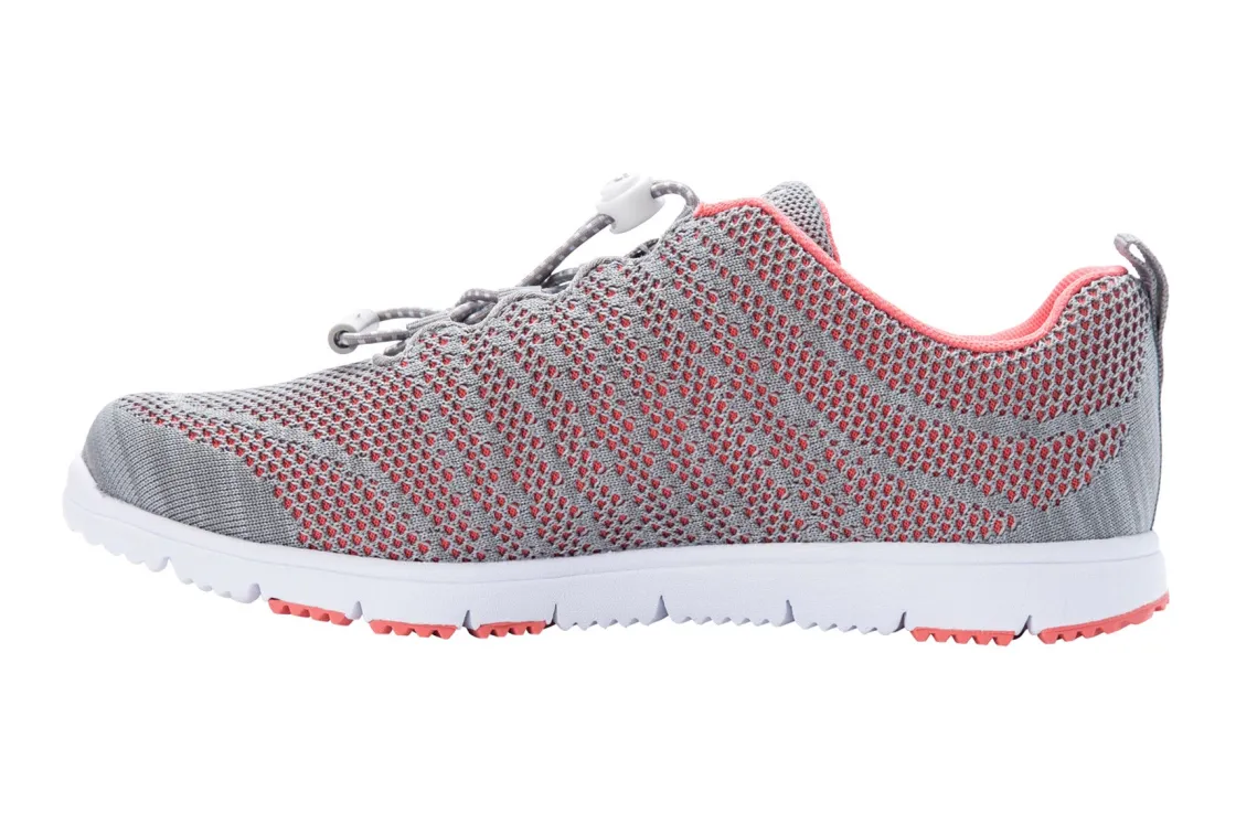 Go anywhere in the women’s Propet Travel Walker Evo! The breathable knit and mesh upper features a toggle lacing system for convenience. The cushioned footbed is easily removed to accommodate a custom orthotic, while the durable rubber outsole provides traction and stability. The Travelwalker will keep your feet dry and comfortable on all of your outdoor excursions. Breathable knit and mesh upper.Toggle lacing system for convenience.Includes a cushioned footbed that is easily removed to accommodate a custom orthotic.Durable rubber outsole provides traction and stability.