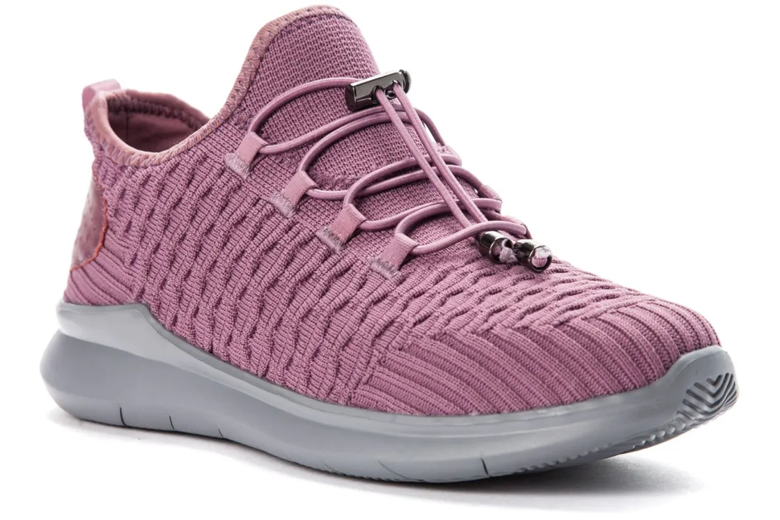 Propet TravelBound is a breathable and comfortable sneaker. Features include a one piece stretch knit mesh upper, removable footbed and EVA and rubber outsole. Toggle laces, knit-in texture detailing and external heel counter support makes these sneakers stand out.