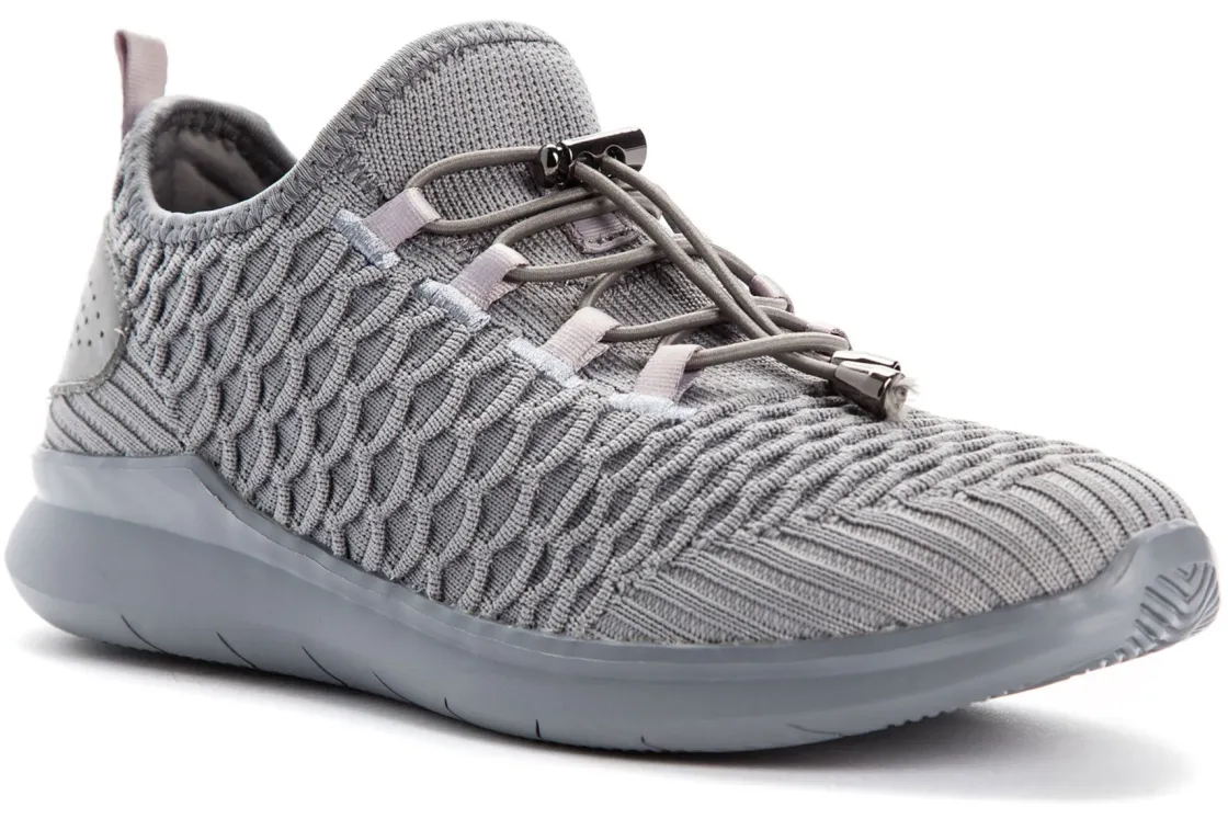 Propet TravelBound is a breathable and comfortable sneaker. Features include a one piece stretch knit mesh upper, removable footbed and EVA and rubber outsole. Toggle laces, knit-in texture detailing and external heel counter support makes these sneakers stand out.