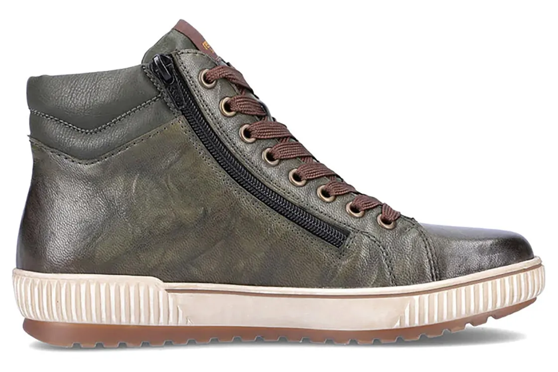 Who says a fashion-forward hi-top sneaker can’t also take a walk on the wetter side? With Rieker TEX for water-resistant warmth and the security of a substantially treaded outsole, this adorable zip-up sneaker will get you where you’re going in effortlessly casual comfort.