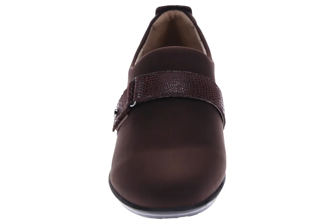 Revere Genoa is an upscale and comfortable stretch loafer. These chic shoes have a stretch textile upper, contoured footbed and slip-resistant outsole. A forefoot cushion zone provides added comfort, an adjustable strap secures feet, while matching strap extenders offer extra width.