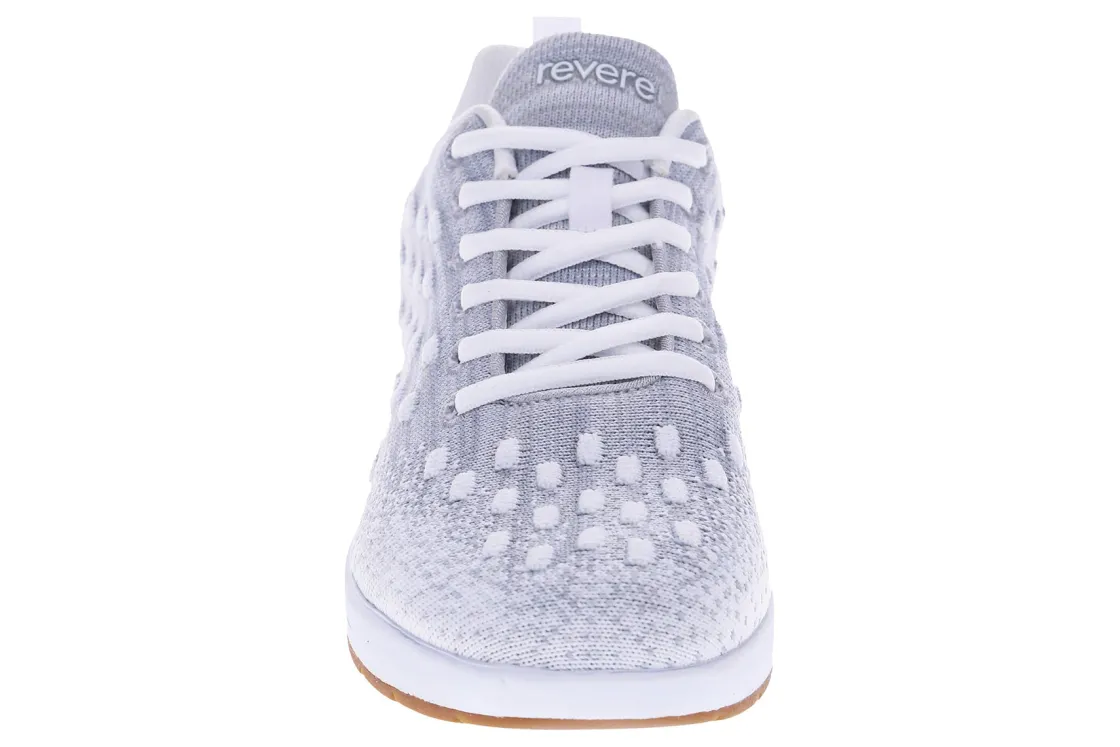 Revere Haiti is a breathable and lightweight knit sneaker. These active shoes have mesh uppers and linings, removable cushioned footbed and EVA outsole. A round toe silhouette, padded tongue and collar and heel tab pull loops outline these chic and comfortable sneakers.