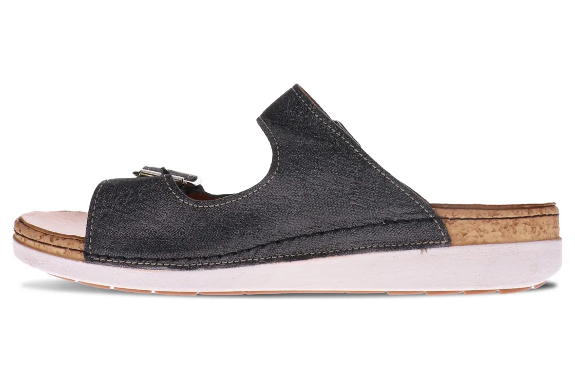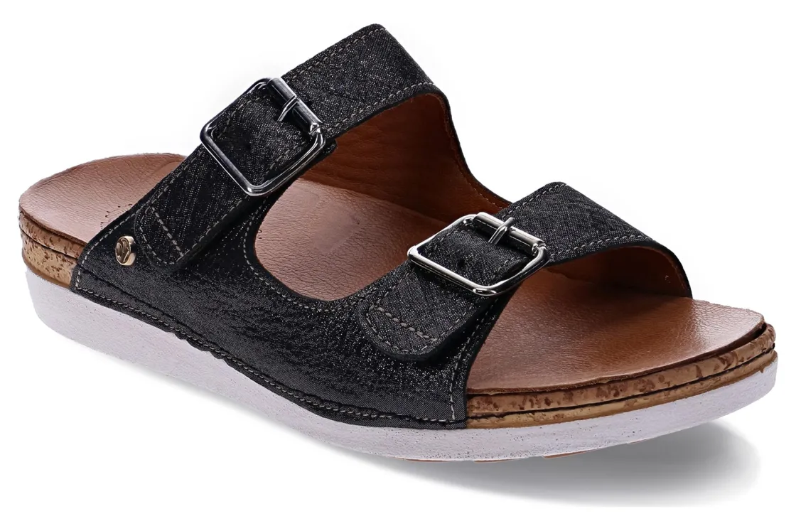 The Brighton orthotic slip ons are those ‘throw-on-and-go’ styles that tick all the boxes – comfortable, stylish and effortless. They feature a removable contoured footbed atop an uplifting platform, providing a hint of height and added comfort during all-day escapades. The adjustable straps which cover and support bunions are topped off with non-functional (but beautiful) buckles. We love these orthotic slide sandals.FEATURES