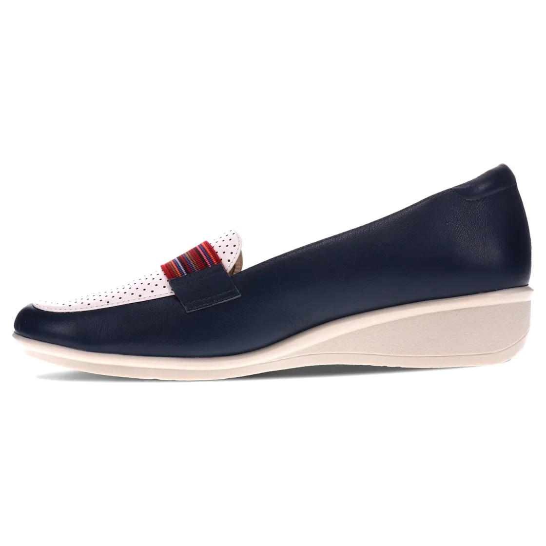 Enjoy the best of both worlds with the Revere Monte Carlo orthotic wedge shoes – part wedge, part loafer. Elastic trims detail the smart silhouette of these smooth leather shoes, ensuring a comfortable, neat fit. You can easily switch out the molded footbed for your own orthotics, if required.
