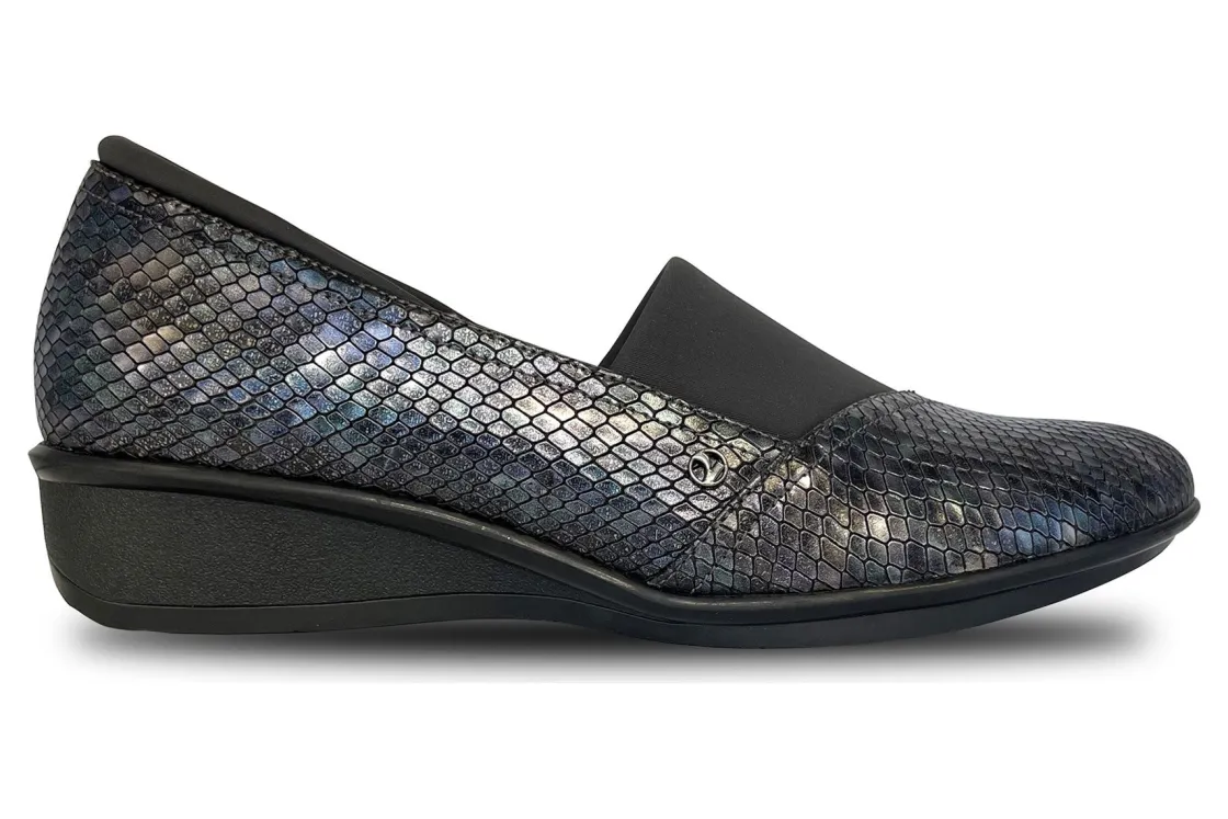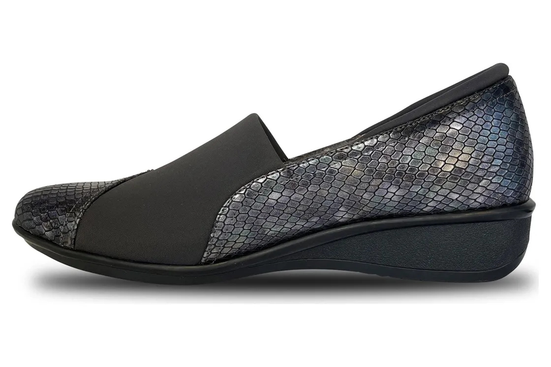 Comfort has never looked cooler than the Revere Naples, a mixed material loafer with ultra modern sensibility. Super soft interest leather uppers contrast with stretch panels across the forefoot make Naples one of our best-selling bunion shoes. Removeable comfort contoured footbed provides proper foot alignment over the arch support for added stability.