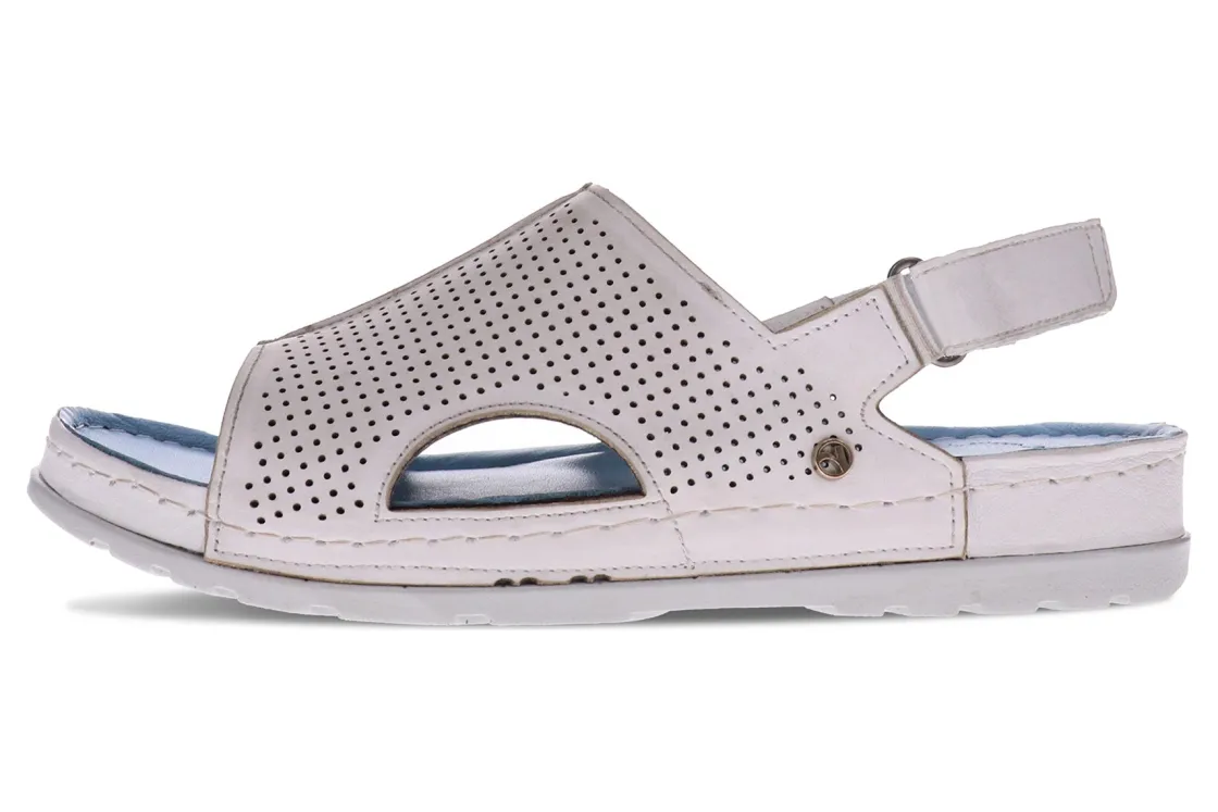 This is the sling-back but not as you know it! Revere’s Tivoli sandals with back straps are artfully detailed with a perforated pattern that’s both contemporary and breathable. Set on a lug-style sole, the upper features flattering cut-outs that strategically reveal the side of the foot for an unexpected flash of skin, alongside an open toe and exposed heel. We’re wearing ours with a cropped wide-leg or flared jean to show off these sandals with straps on the back.FEATURES