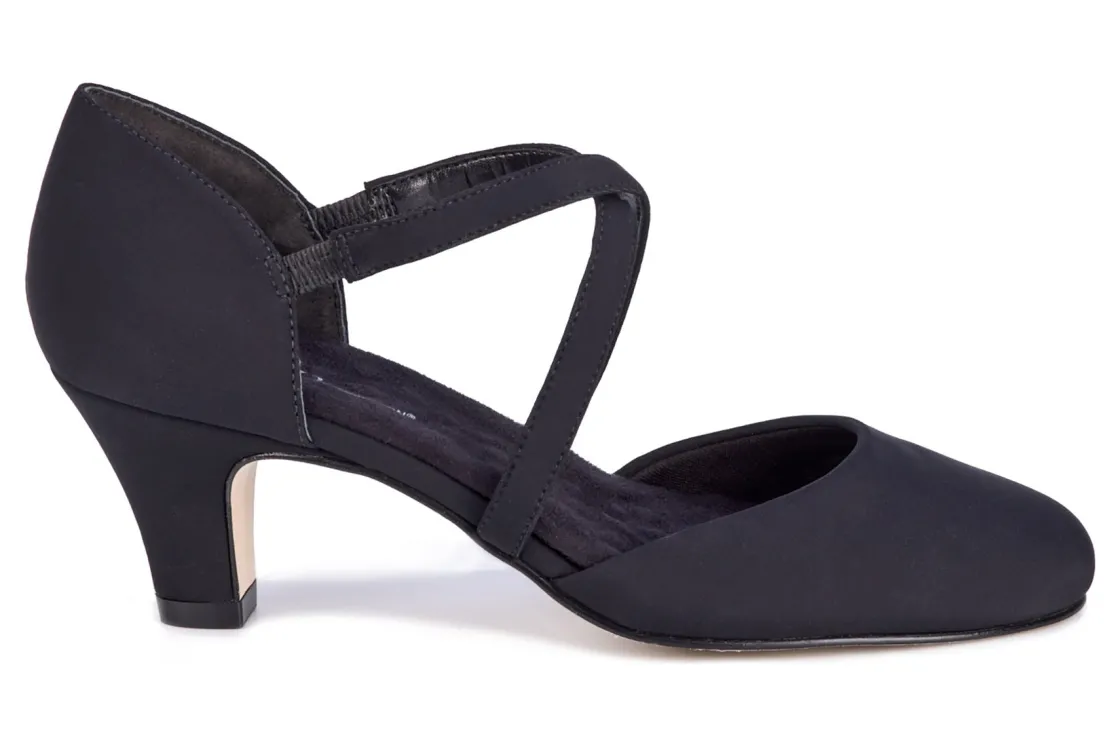 Classy and chic with an eye on retro style, the Ros Hommerson Charleston is the newest dancing queen! A cushioned Tiny Pillows footbed, small gore on the vamp instep, elasticized straps and a closed-in back create the perfect fit for comfort and good looks! With a 2 3/8″ heel and leather sole it is perfect to dance the night away!