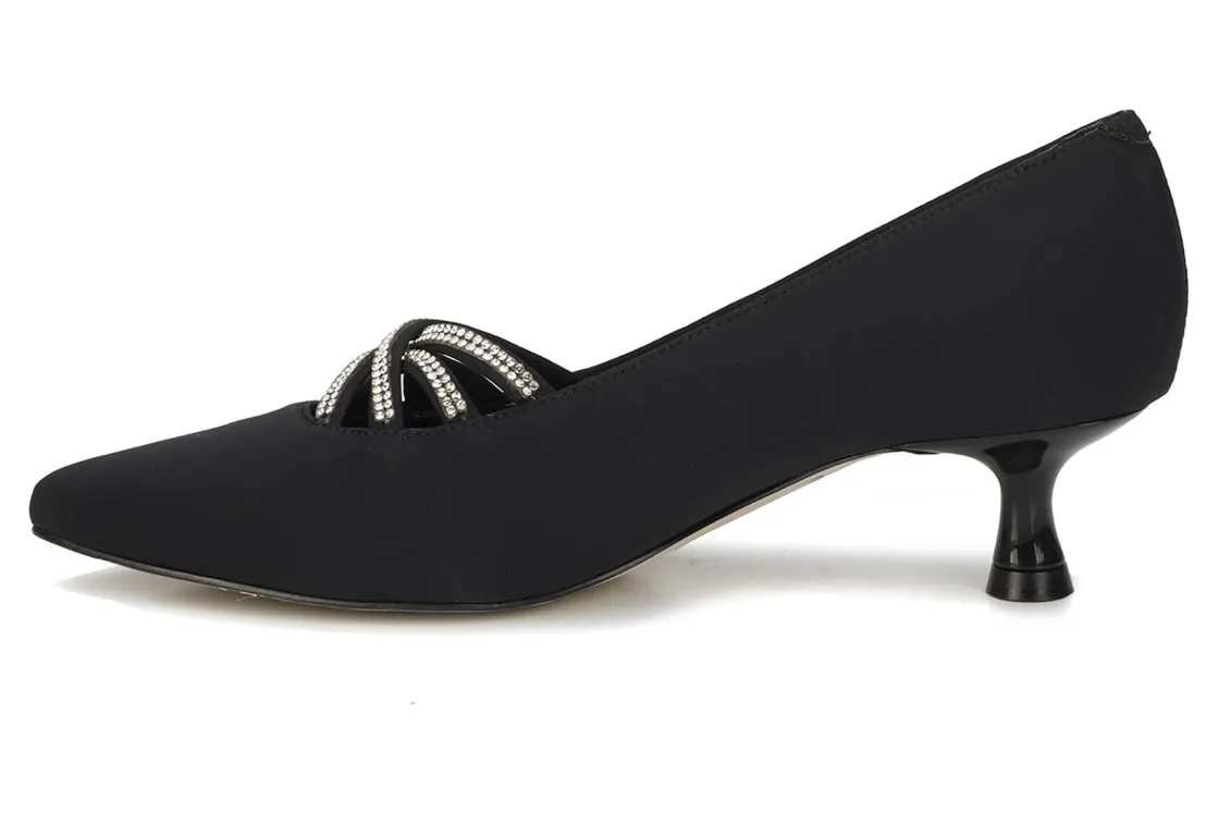 Ready to up your dress-shoe game? Look no further than Bonnie from Ros! Made from beautiful micro fiber uppers with lovely crystal rhinestone accented crisscross detail straps, this graceful pointed-toe, sculpted kitten-heel pump is further enhanced by Walking Cradles signature Tiny Pillows insoles, which include moderate arch support and dual-density microfiber sueded insoles. Slip these beauties on and dance the night away!Micro fabric uppers Softly pointed toe Rhinestone crystal accented detail straps Knit fit lining Ultra-cushioned, removable Tiny Pillows insoles Sueded microfiber sock lining Heel height: 1 3/4 inch Made in Brazil