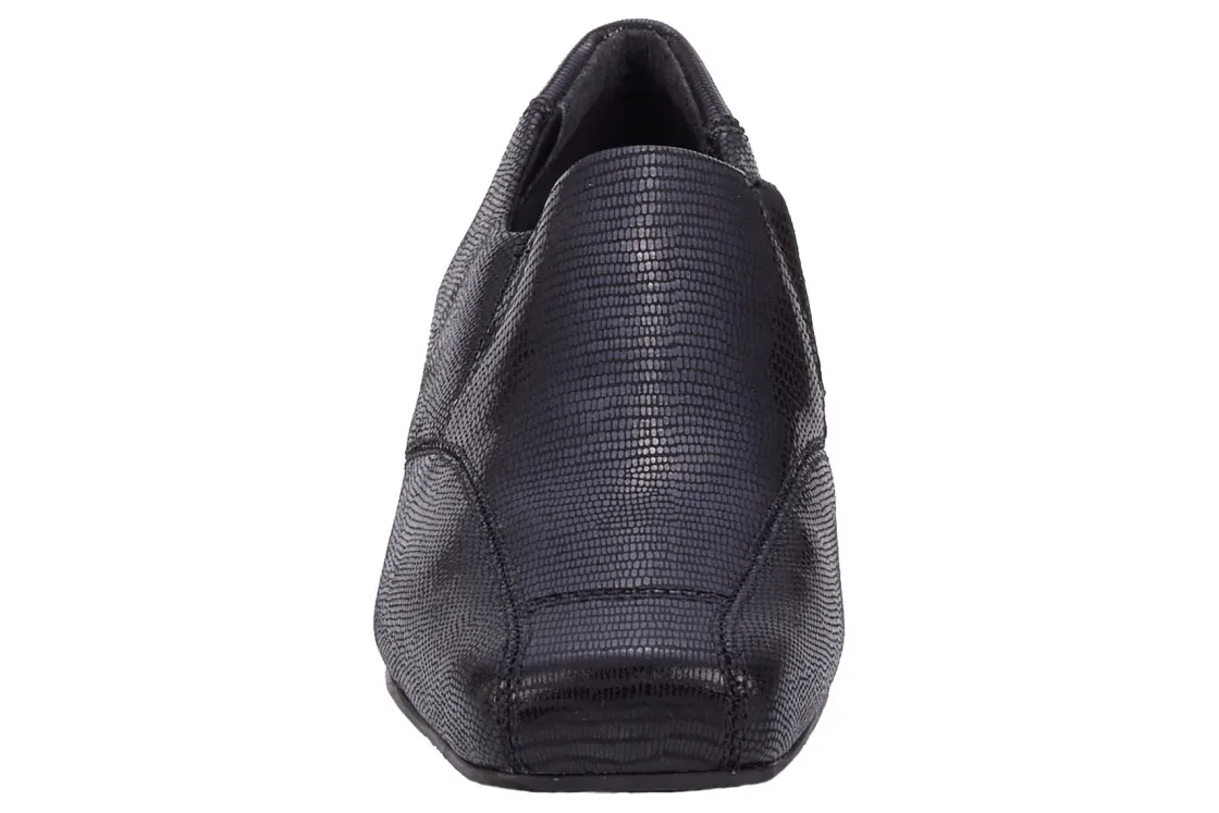 Smartly styled, yet with complete attention to comfort and fit, Eagen by Ros is the perfect combo of a loafer and a pump! Made in lovely lizard print patent leather uppers with dual goring for easy on and off, Eagen has an on-trend squared toe with plenty of toe room. Inside you’ll find our signature cushioned Tiny Pillows insoles and soft, knit linings. Set on a 1 3/8 inch heel, Eagen will keep you walking comfortably and stylishly all day long!Patent Lizard Print leather uppers Squared toe with walled toe box for extra toe room Knit fit lining Cushioned, removable Tiny Pillows insoles Sueded microfabric sock lining Rubber outsole Heel height: 1 3/8 inch Made in Brazil
