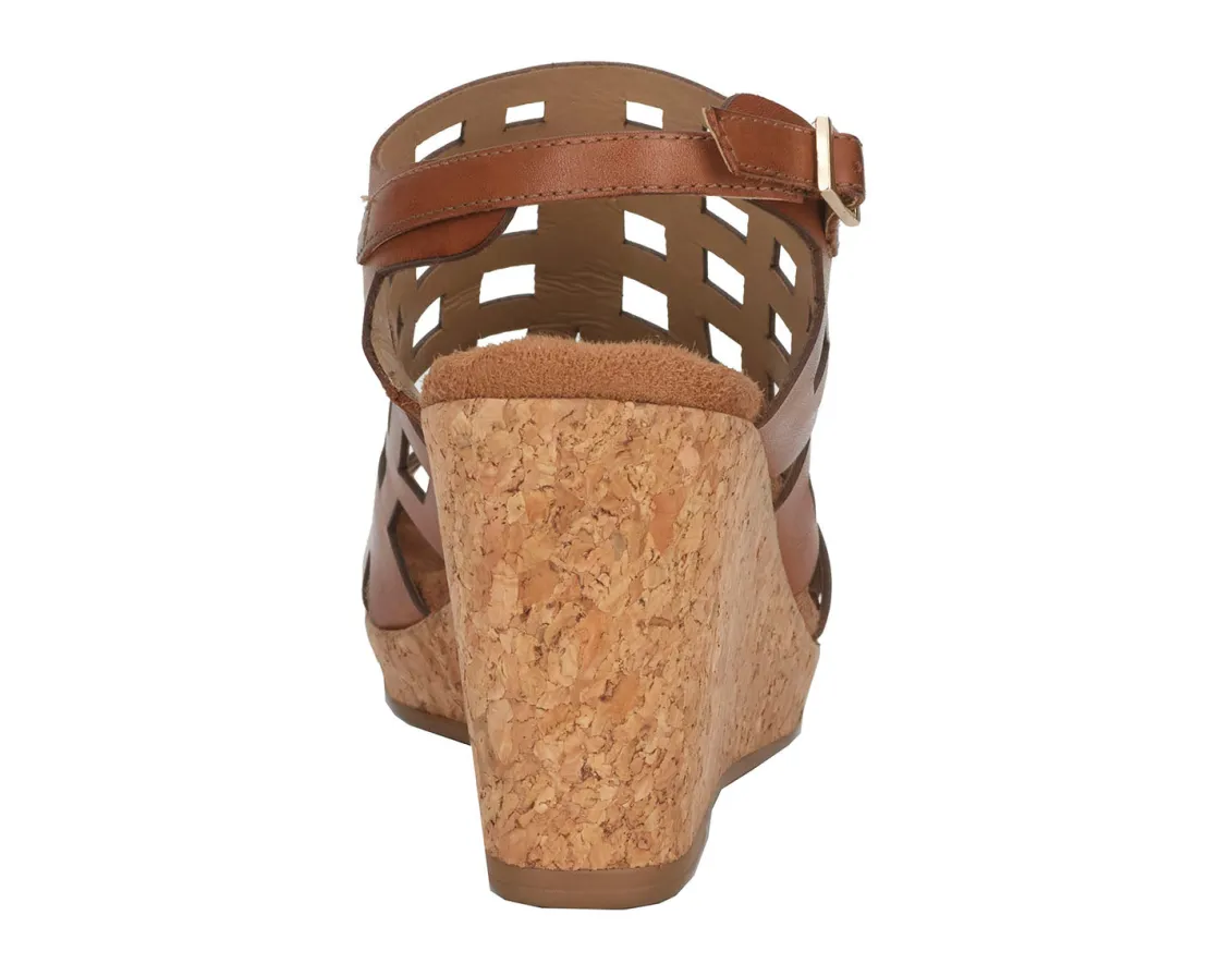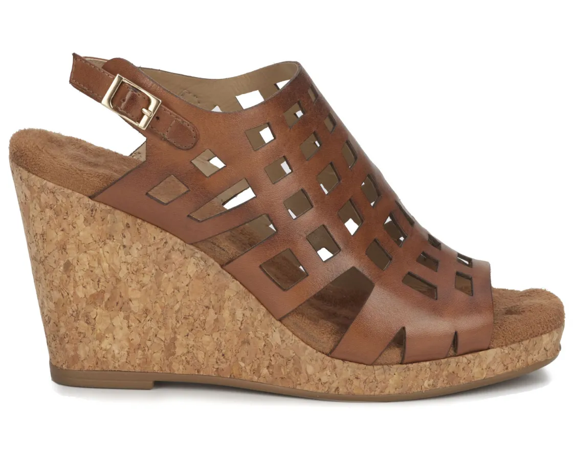 Ros Hommerson Kennedy is a sophisticated wedge sandal. These elevated 3.5-inch heels have cutout leather uppers, an adjustable heel strap, a cushioned footbed and a PU outsole.