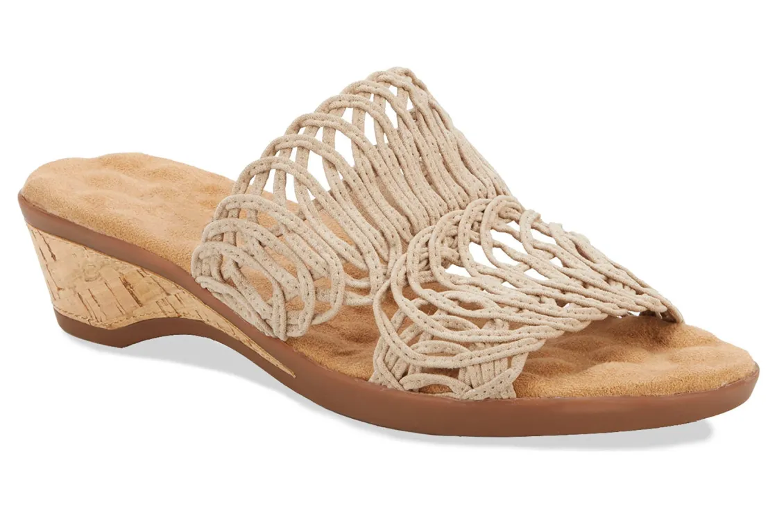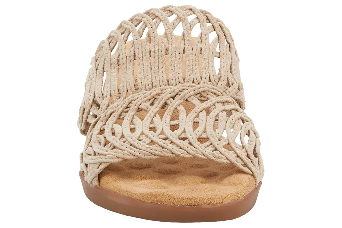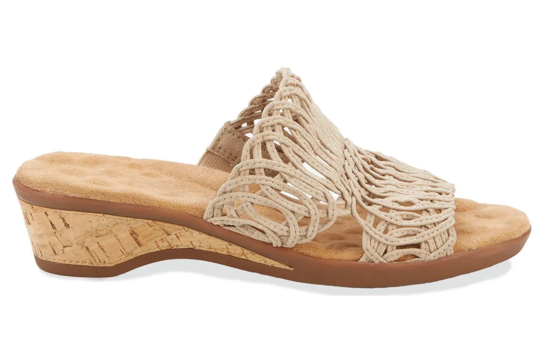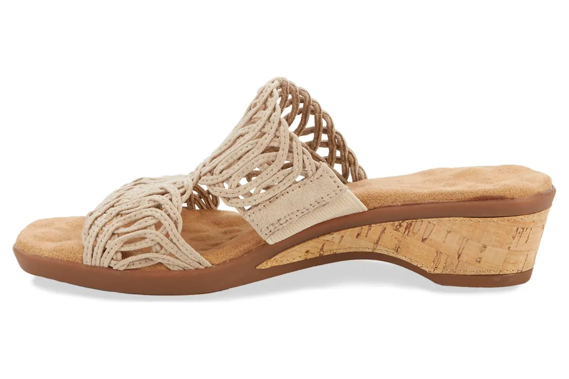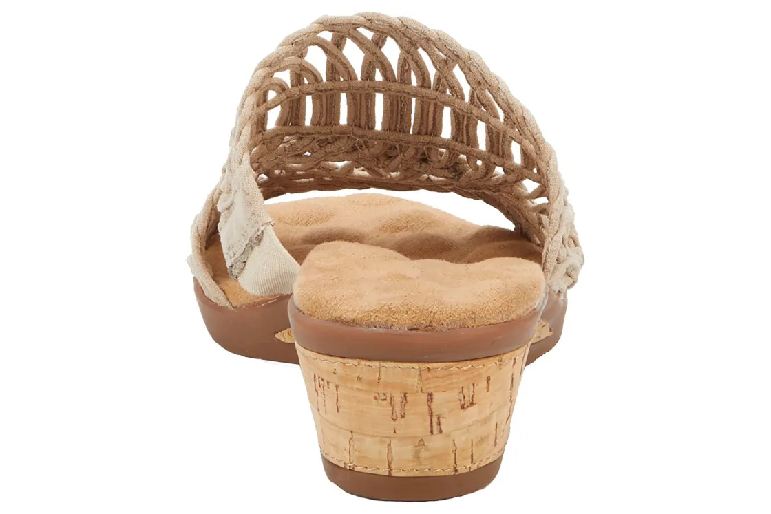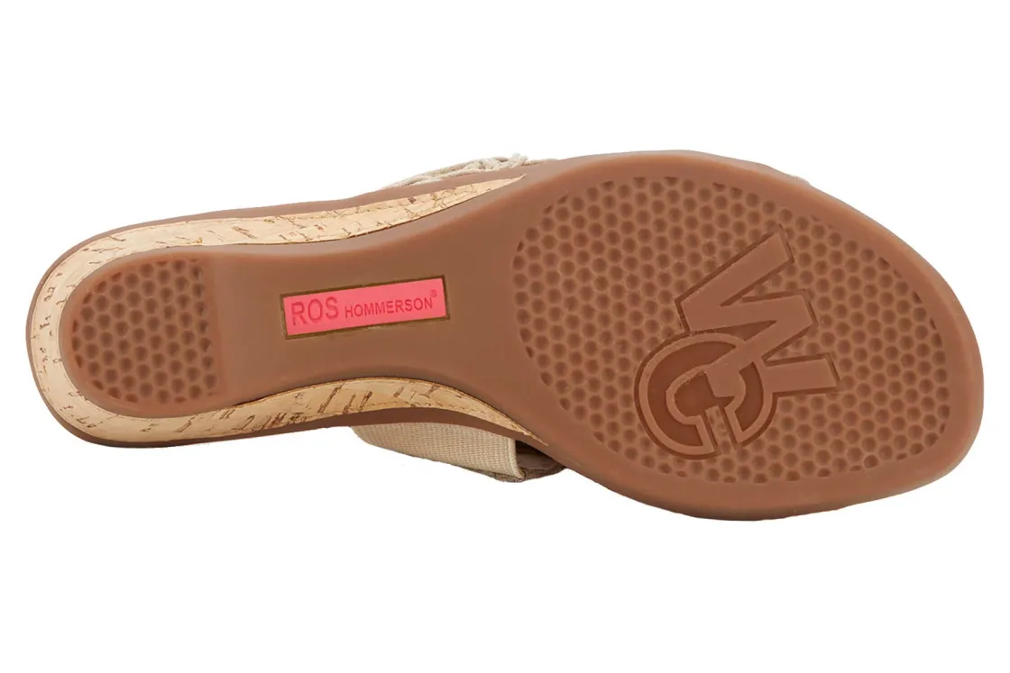 Incredible comfort and undeniable style are what you get with the Ros Hommerson Kudos. Designed with delicate woven fabric uppers, a discreet instep gore allows this slip-on sandal to fit perfectly to your foot! Signature Tiny Pillows insoles provide extreme cushioning with moderate arch support. A cork covered wedge heel on a flexible unit bottom is the perfect height to wear with all your spring and summer looks!
