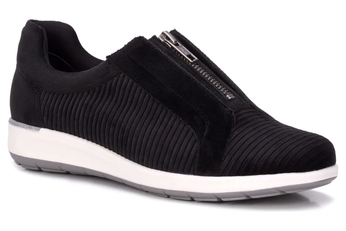 Introducing your new favorite athleisure sneaker! Made from velvety-soft corduroy fabric uppers, Oliver has a plethora of fit and comfort features! The sturdy zipper is functional and can be worn open or closed. There is also hidden dual goring on each side of the zipper, creating an even more customized fit. The tongue and collar are both lightly padded, allowing a soft, non-slip fit. Knit fit linings and a suede microfiber sock liner keep feet dry and comfortable – with or without socks! Our signature Tiny Pillows insoles provide a massaging effect to every step, with cushioned foam that bounces back, wear after wear. The 1” unit bottom is great for avoiding or reducing heel pain and provides stability and flexibility to move naturally with your foot for all-day walking comfort.