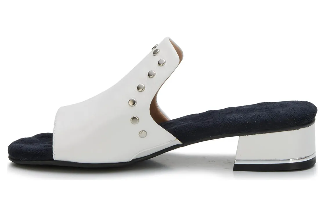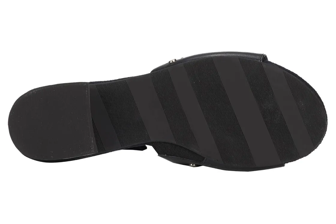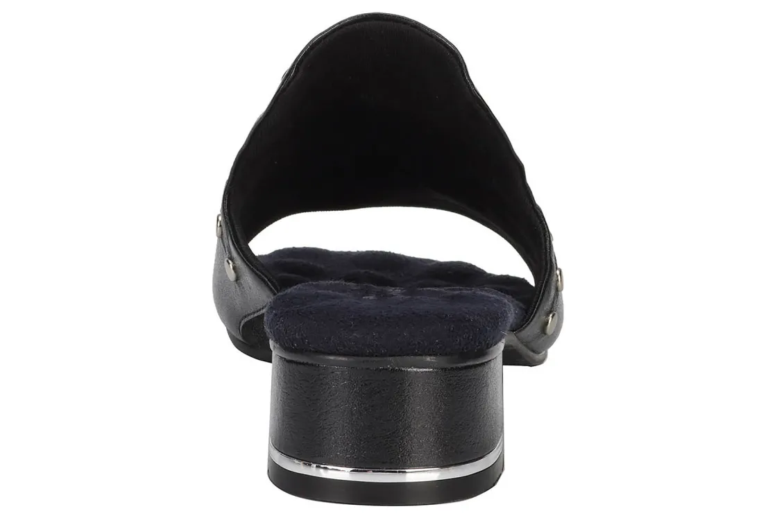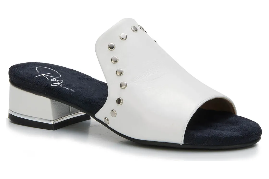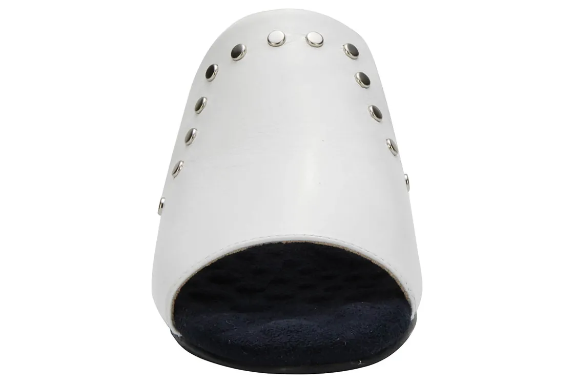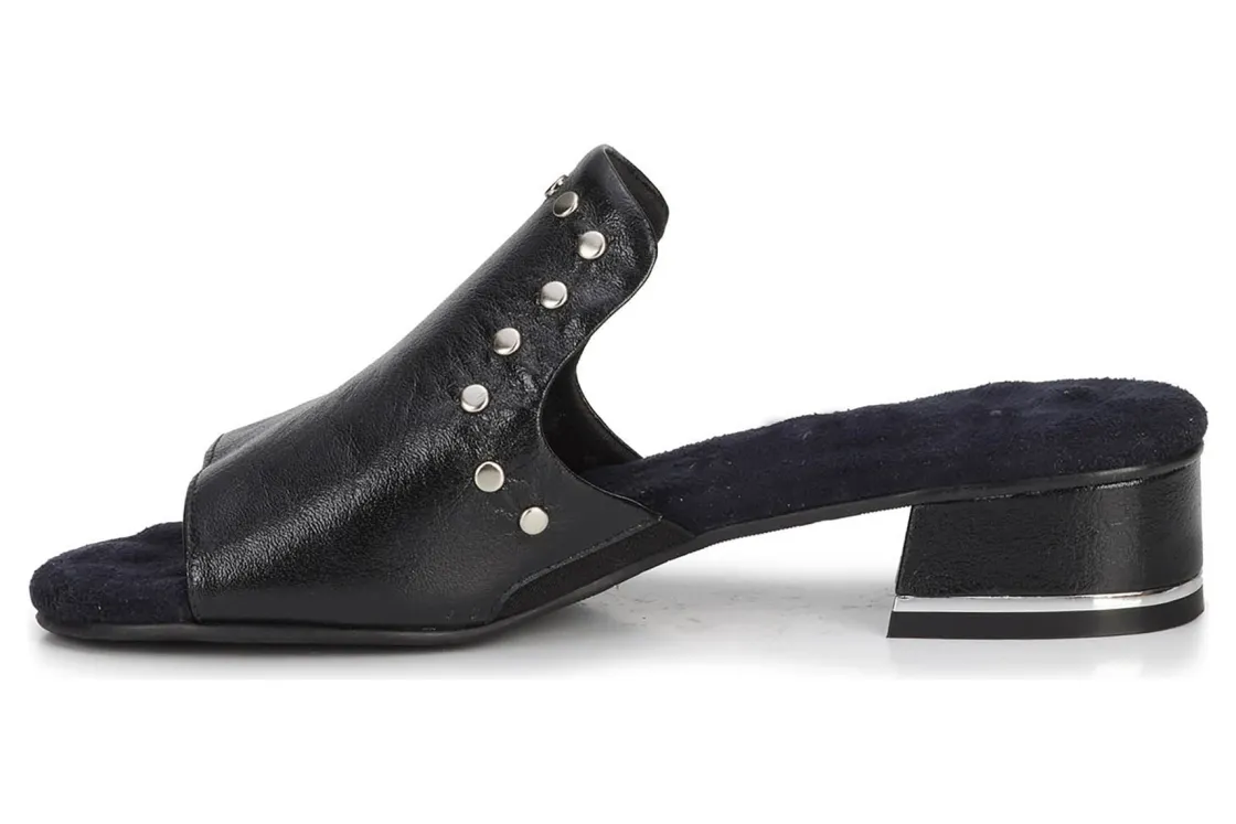 This easy slip-on sandal by Ros gives a luxurious vibe to your spring and summer wardrobe. Made from soft leather, Bizzy is accentuated by metallic nail heads and heel detail. A discreet instep gore allows flexibility when walking while cushioned pillowy footbed with moderate arch support make every step a dream!