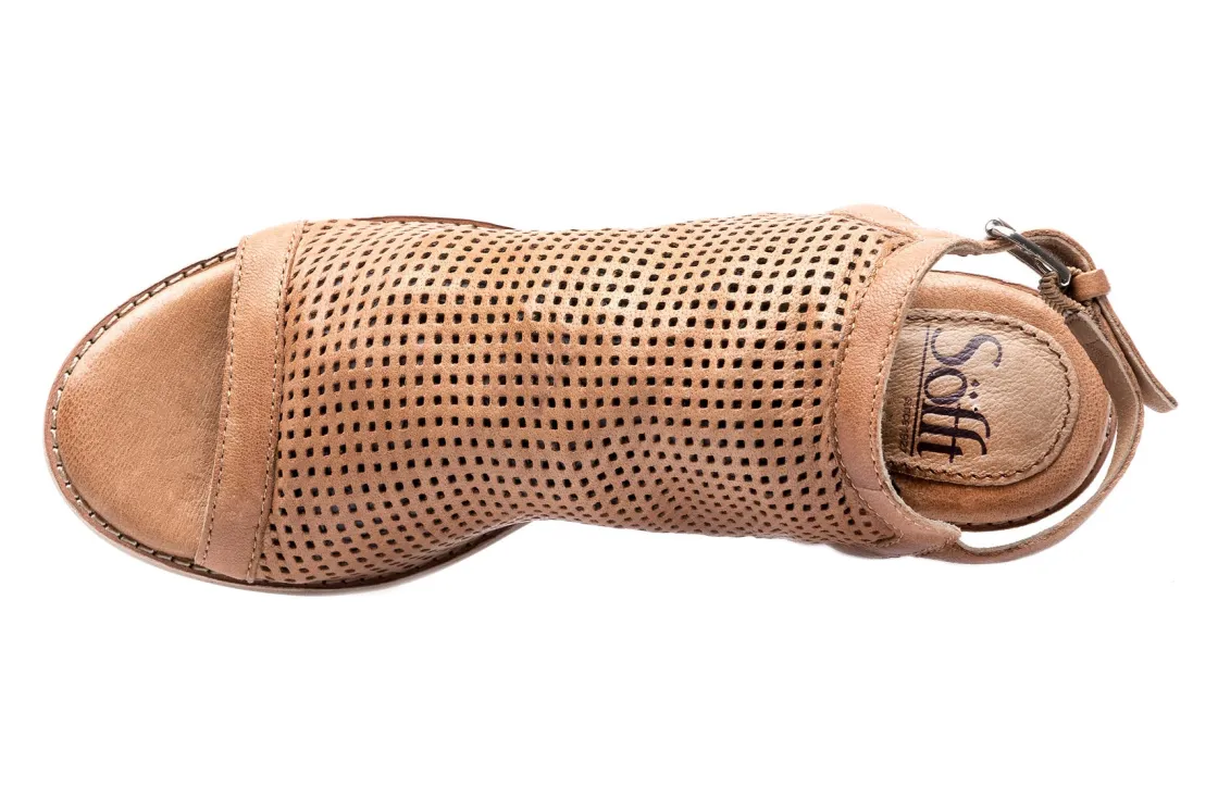 Sofft Milly is a block heel sandal for any occasion. This slingback silhouette has a perforated leather upper, adjustable buckle and flexible TPR outsole. A cushioned footbed, leather lining and 3-inch heel height outlines these trendy summer sandals.